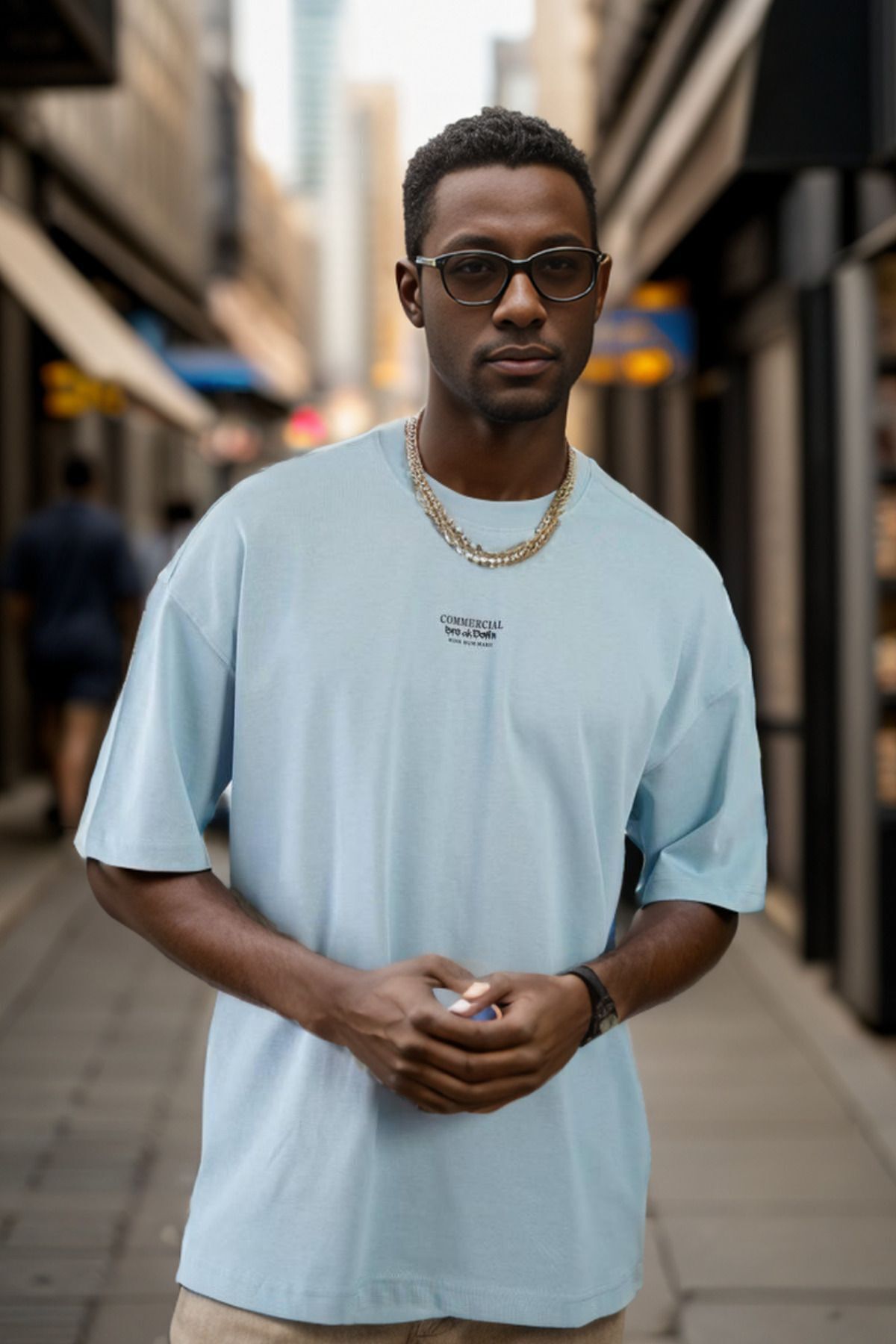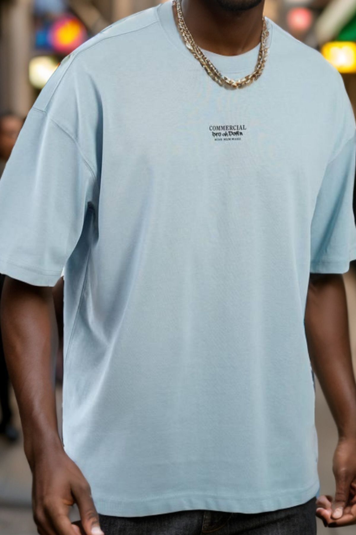Balenbi Unisex Bisiklet Yaka Oversize Kalıp Penye Tişört 1004 S - Petrol