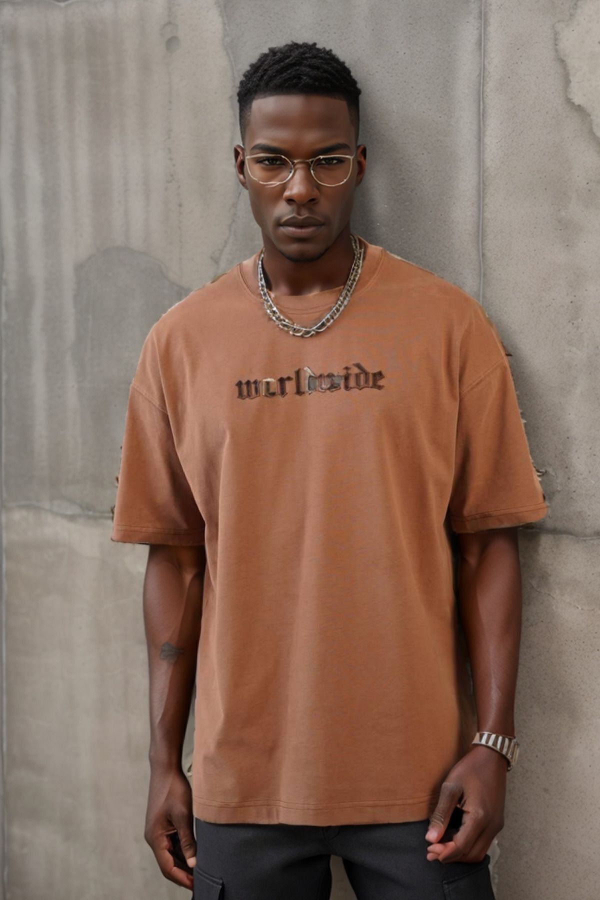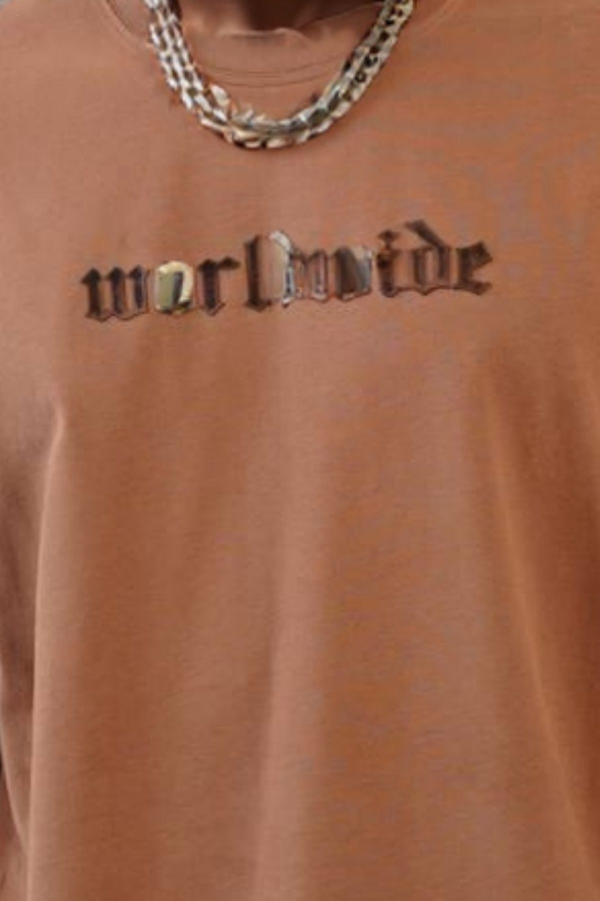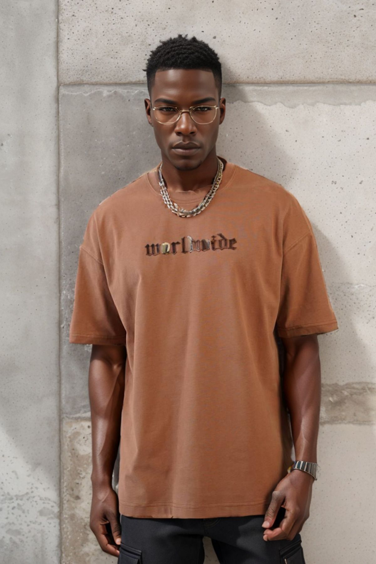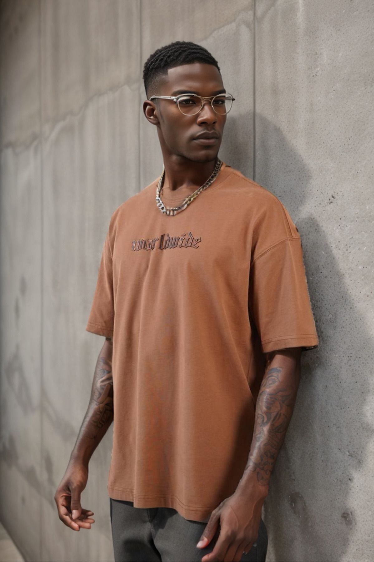Balenbi Unisex Bisiklet Yaka Oversize Kalıp Penye Tişört 1004 S - Taba