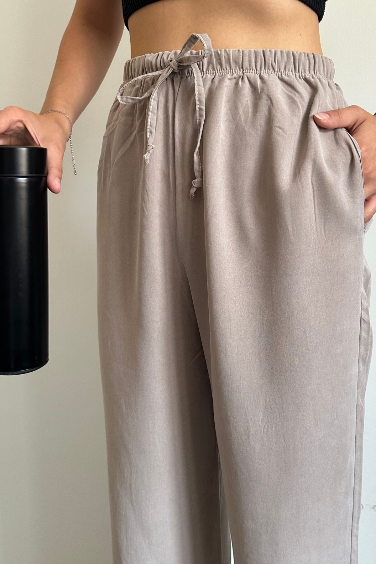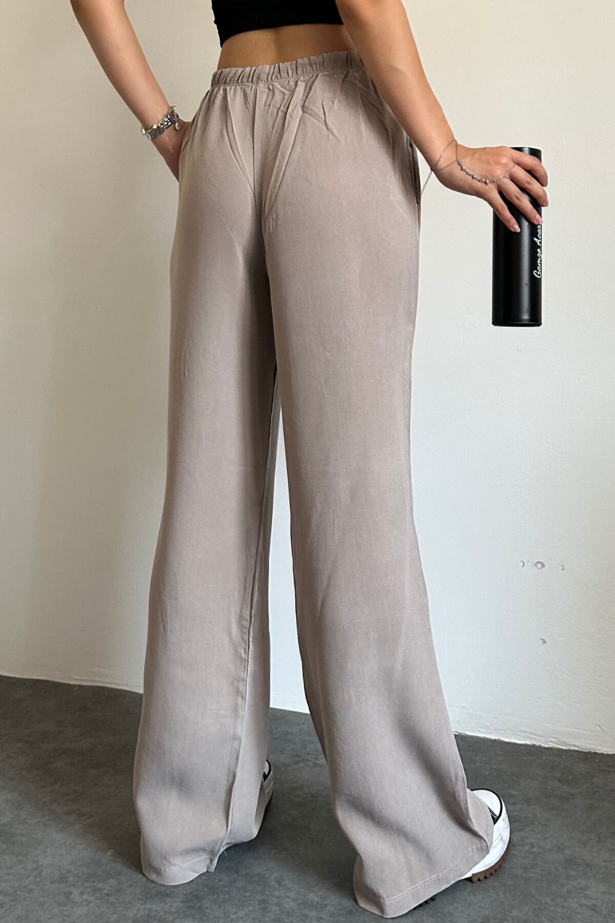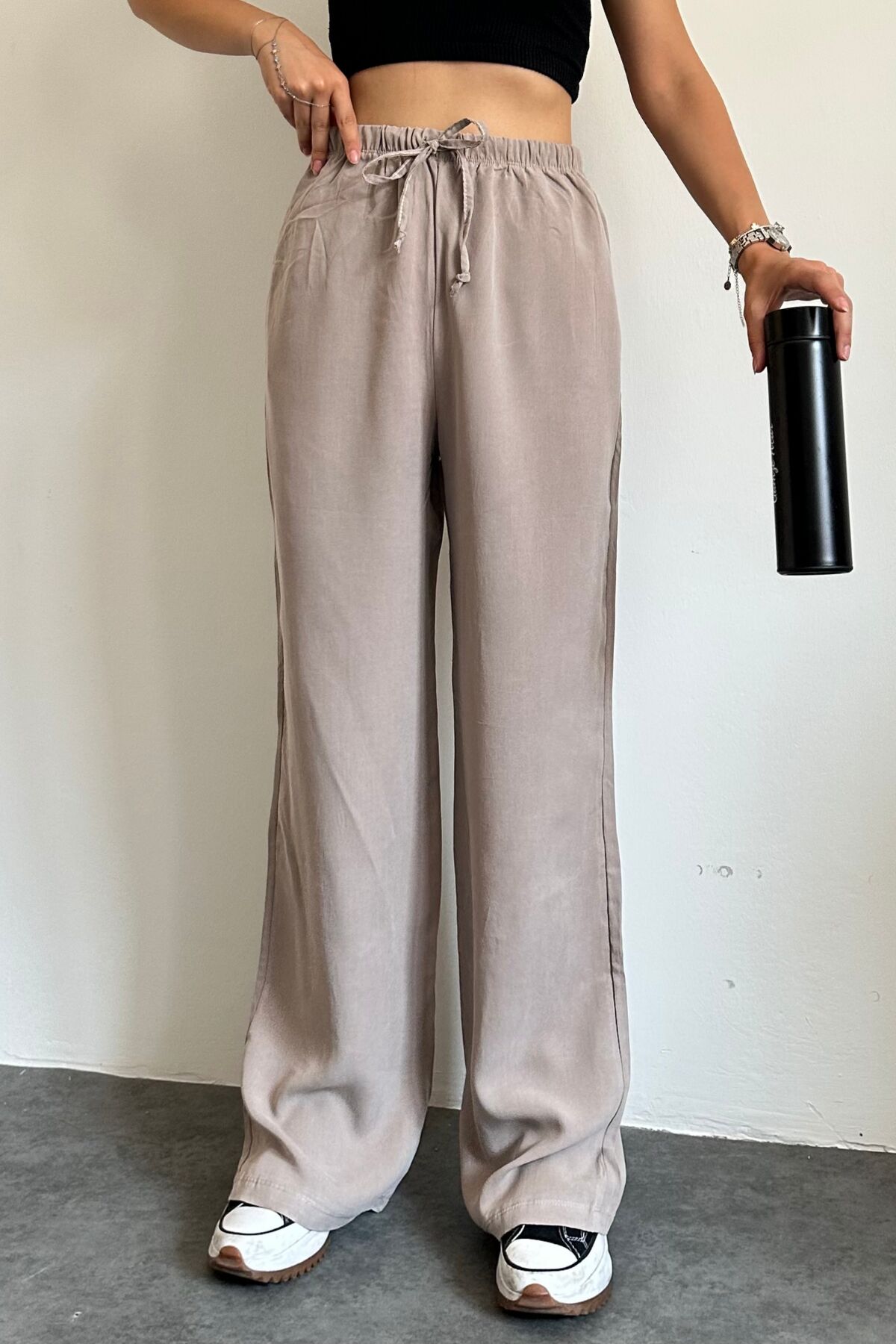 Feela Moda 2008 Bağcıklı Beli Lastikli Yıkamalı Modal Dokuma Palazzo Kadın Pantolon 36 - Bej