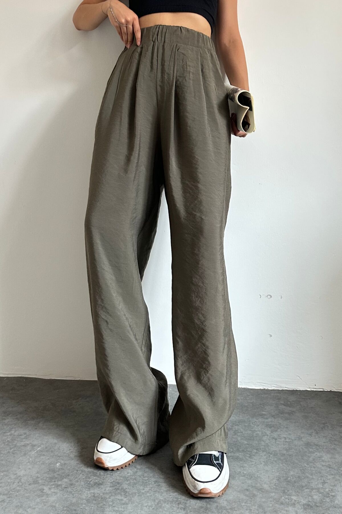 Feela Moda 2009 Beli Lastikli Paraşüt Kumaş Palazzo Kadın Pantolon - Rahatlık ve şıklığı bir arada sunan beli lastikli tasarım, gün boyu konfor sağlar.; - Yaz aylarının vazgeçilmezi hafif ve nefes alabilen paraşüt kumaşı ile sıcak günlerde serinlik hissi verir.; - Çift cepli yapısı küçük eşyalarınız için pratik saklama alanları sunar.; - Baskısız tasarımı ile sade ve zamansız bir görünüm elde edilir.; - Astarsız yapısı sayesinde hafif ve rahat bir kullanım imkanı tanır.; - %100 Polyamid materyali dayanıklılığı artırırken, ince dokusuyla modern bir siluet oluşturur.; - Sürdürülebilirlik detayı bulunmayan bu pantolon, çevreye duyarlı tercihler yapmak isteyenler için idealdir.; - Jogger kesimiyle trendleri takip eden stil sahibi kadınların tercihi olur.; - Mono kapama özelliğiyle basit ama şık bir görünüm kazandırırken, kemersiz tasarımı modern çizgilere sahiptir.; - Beli lastikli yapısı sayesinde farklı vücut tiplerine uyum sağlar ve kolayca giyilip çıkartılabilir.; - Smart/office ortamlarına uygun tasarımı ile iş hayatında da rahatlıkla tercih edilebilir.; - Yetişkin yaş grubuna hitap eden bu pantolon, her gardrobun temel parçalarından biridir.; - Türkiye'de üretilmiş olması kaliteyi ve yerel üretim avantajlarını beraberinde getirir.; - Paraşüt kumaşı dayanıklılığı arttırarak uzun süreli kullanım vaat eder.; - Regular boy kesimiyle farklı boylardaki kullanıcılar için idealdir.; - Bel ölçüsü kişisel tercihe göre ayarlanabilir; böylece her bedene mükemmel uyumu yakalamak mümkün olur.;