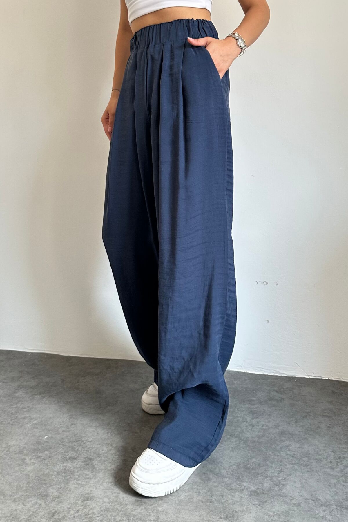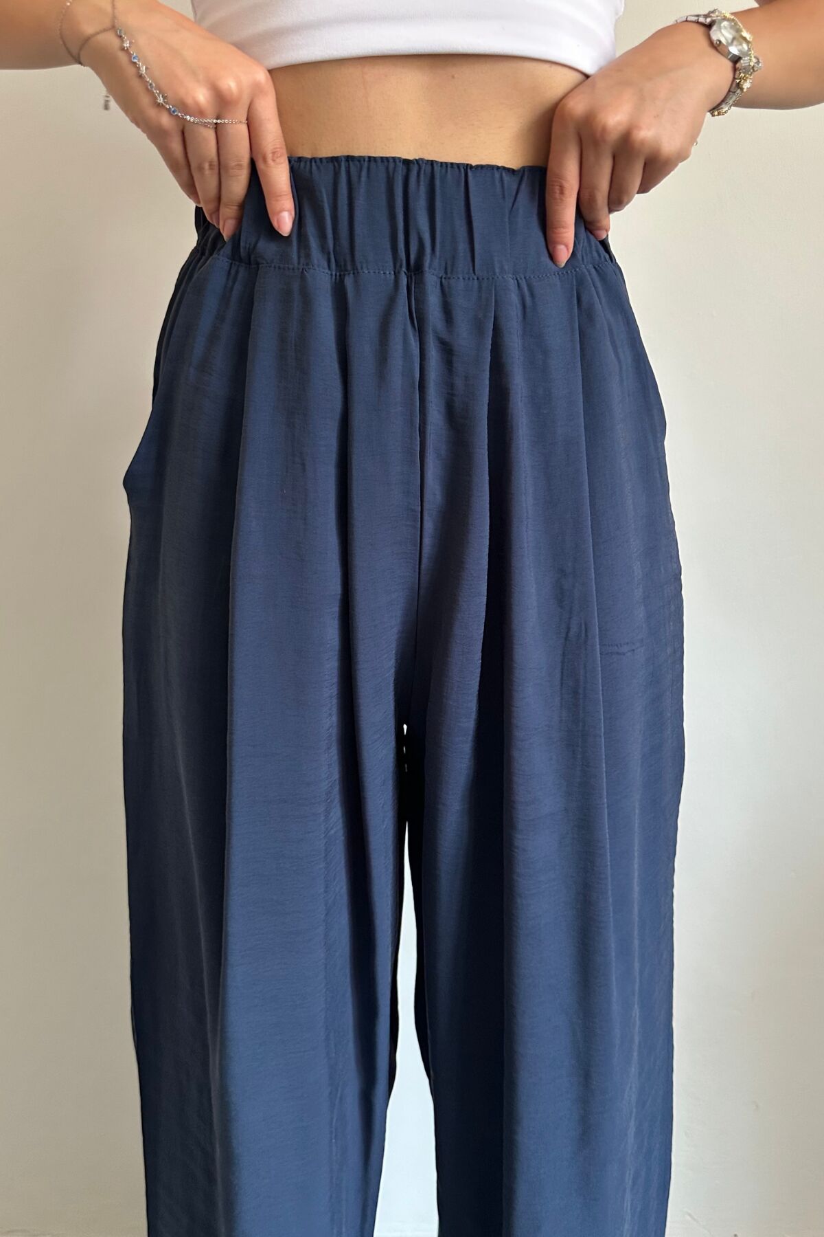 Feela Moda 2009 Beli Lastikli Paraşüt Kumaş Palazzo Kadın Pantolon 40 - Lacivert