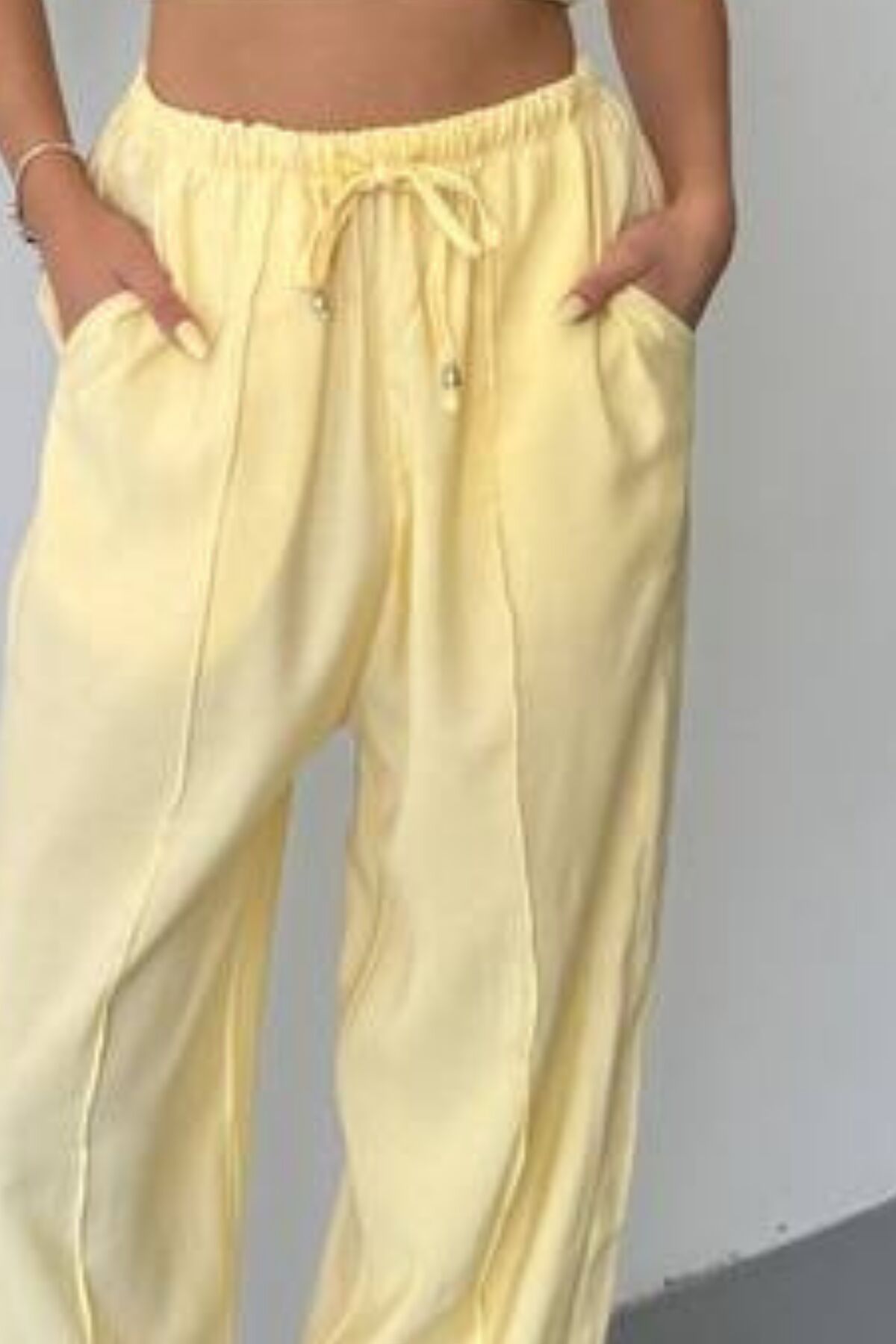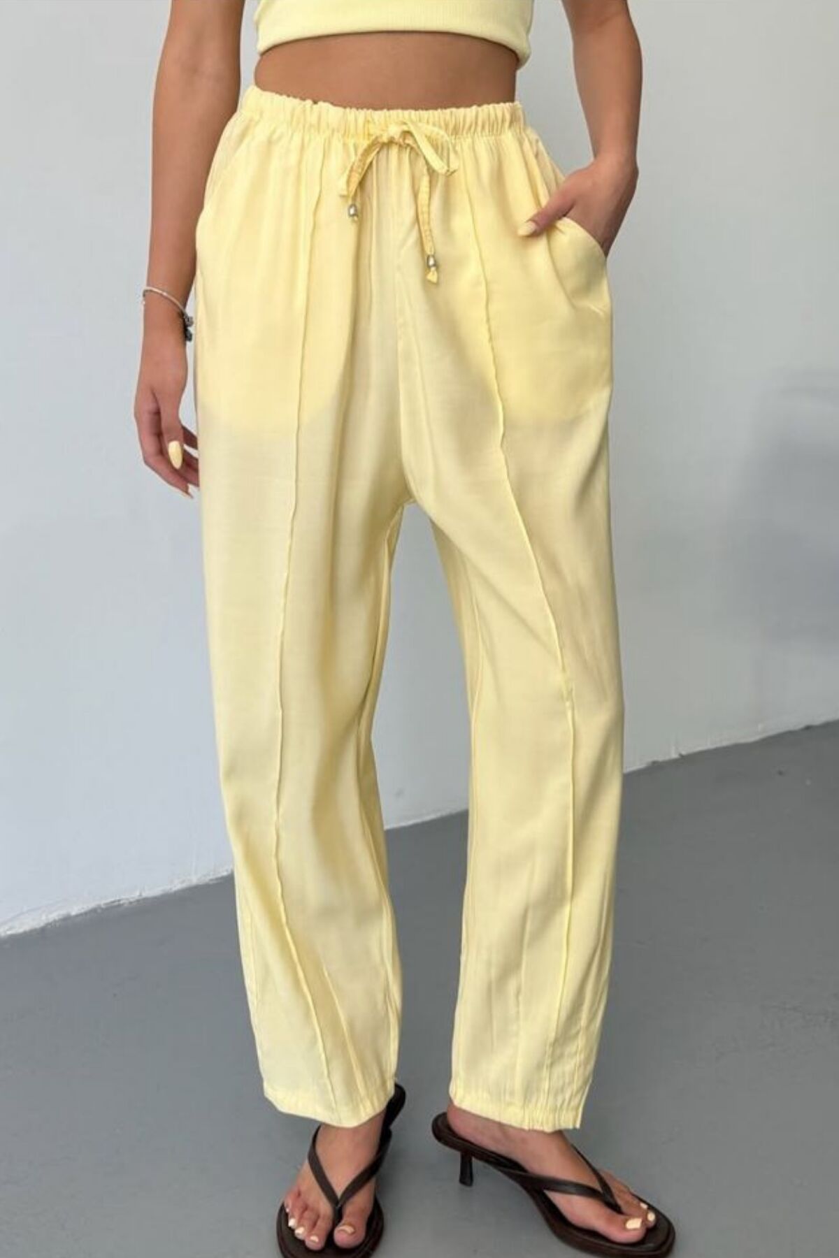 Feela Moda Kadın Modal Cupra Beli Lastikli Çımalı Şalvar Pantolon 2019 38 - Sarı
