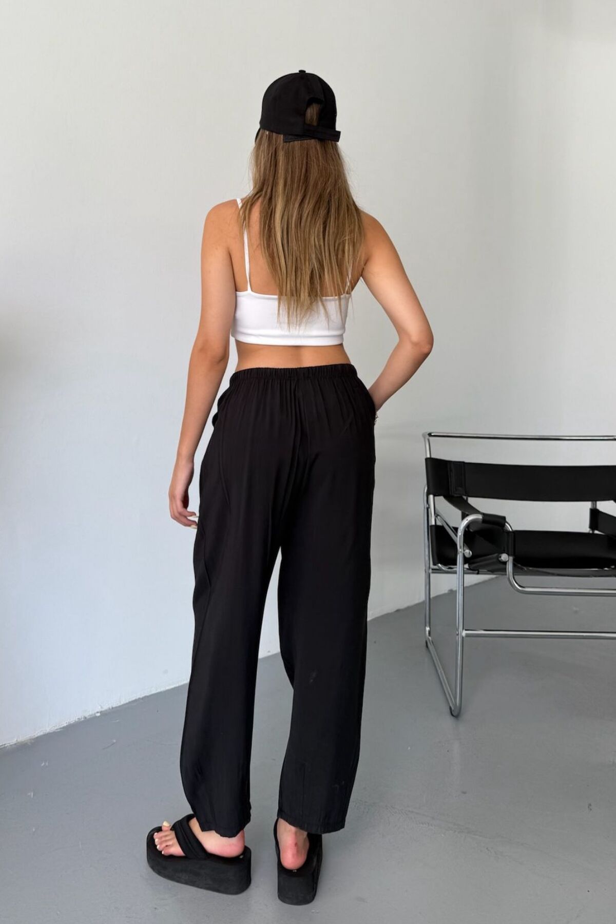 Feela Moda Kadın Modal Cupra Beli Lastikli Çımalı Şalvar Pantolon 2019 38 - Siyah