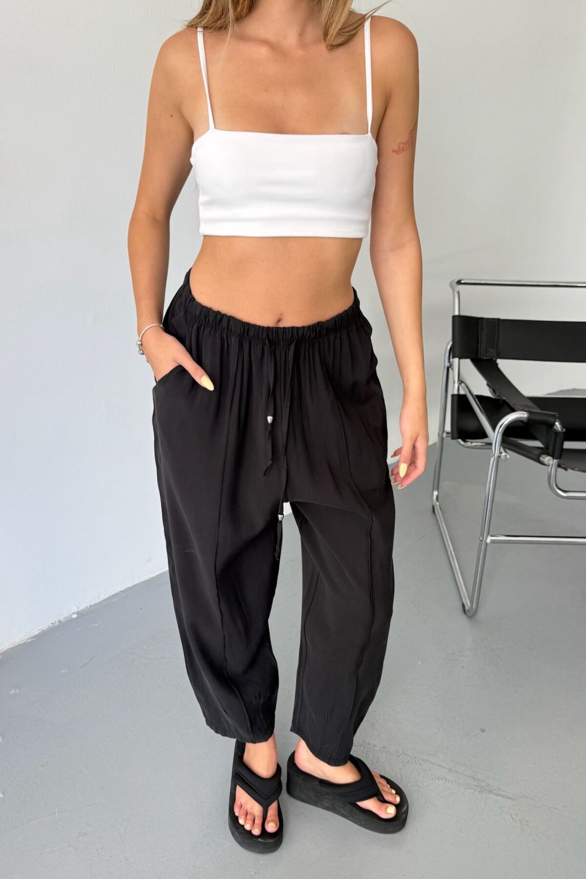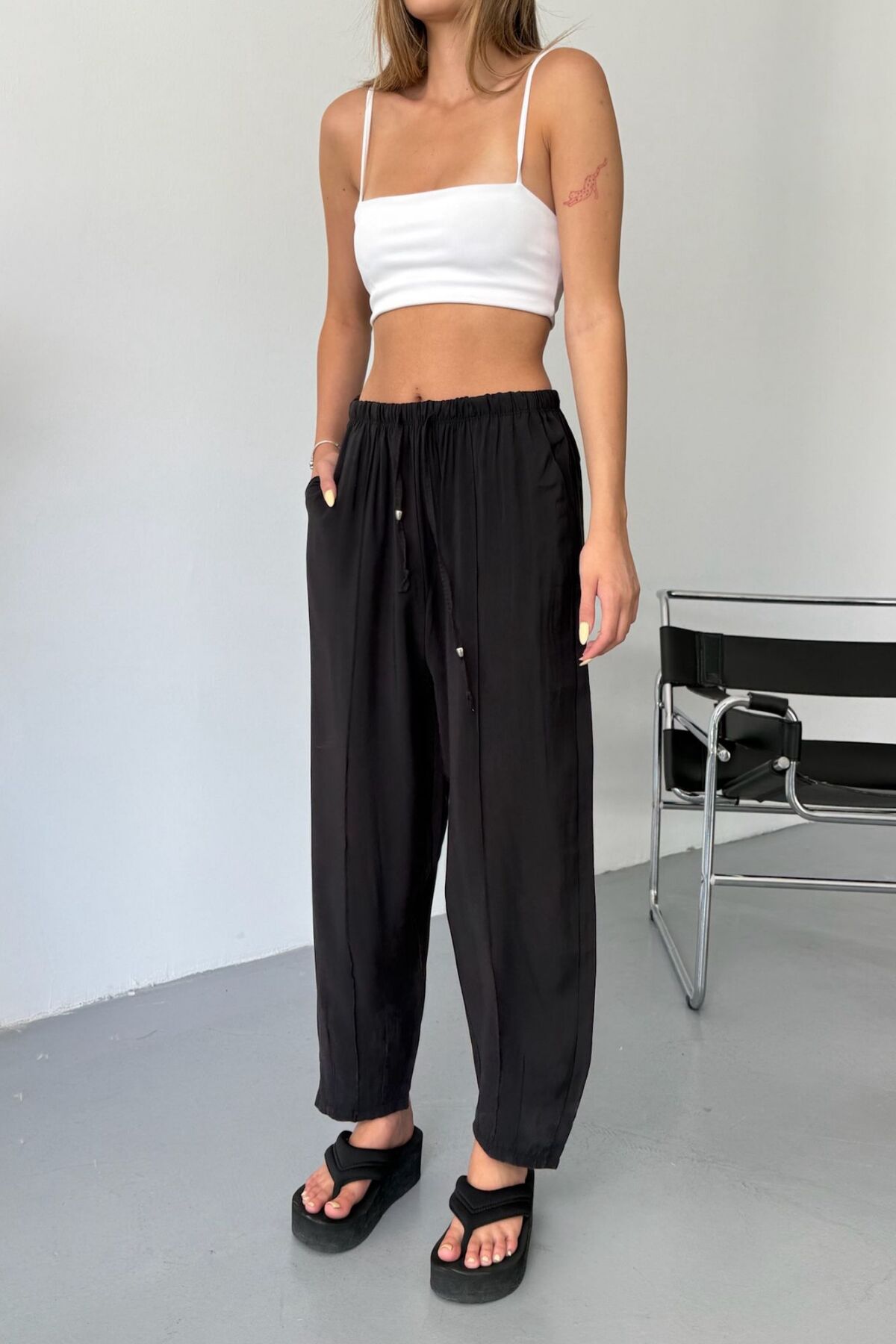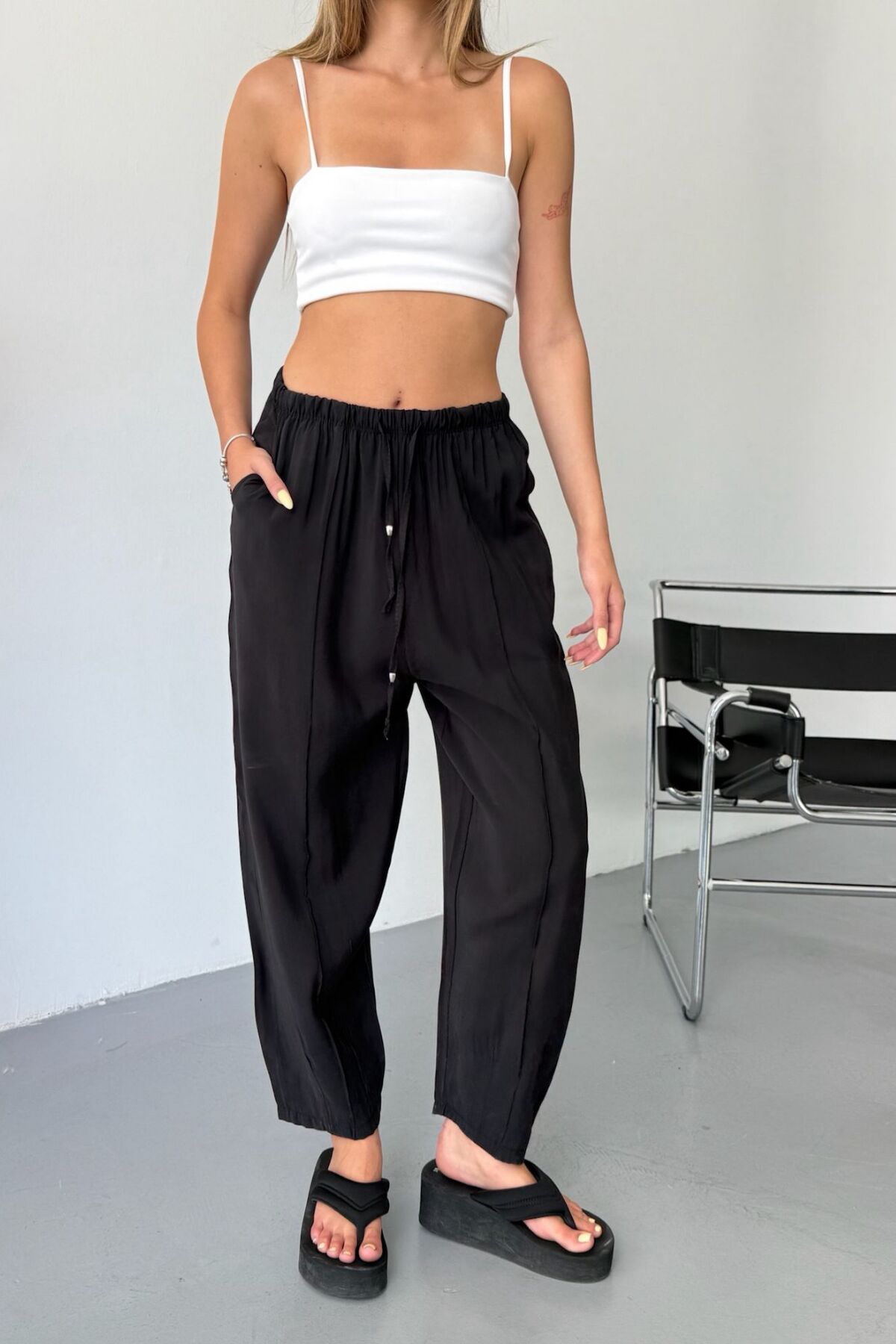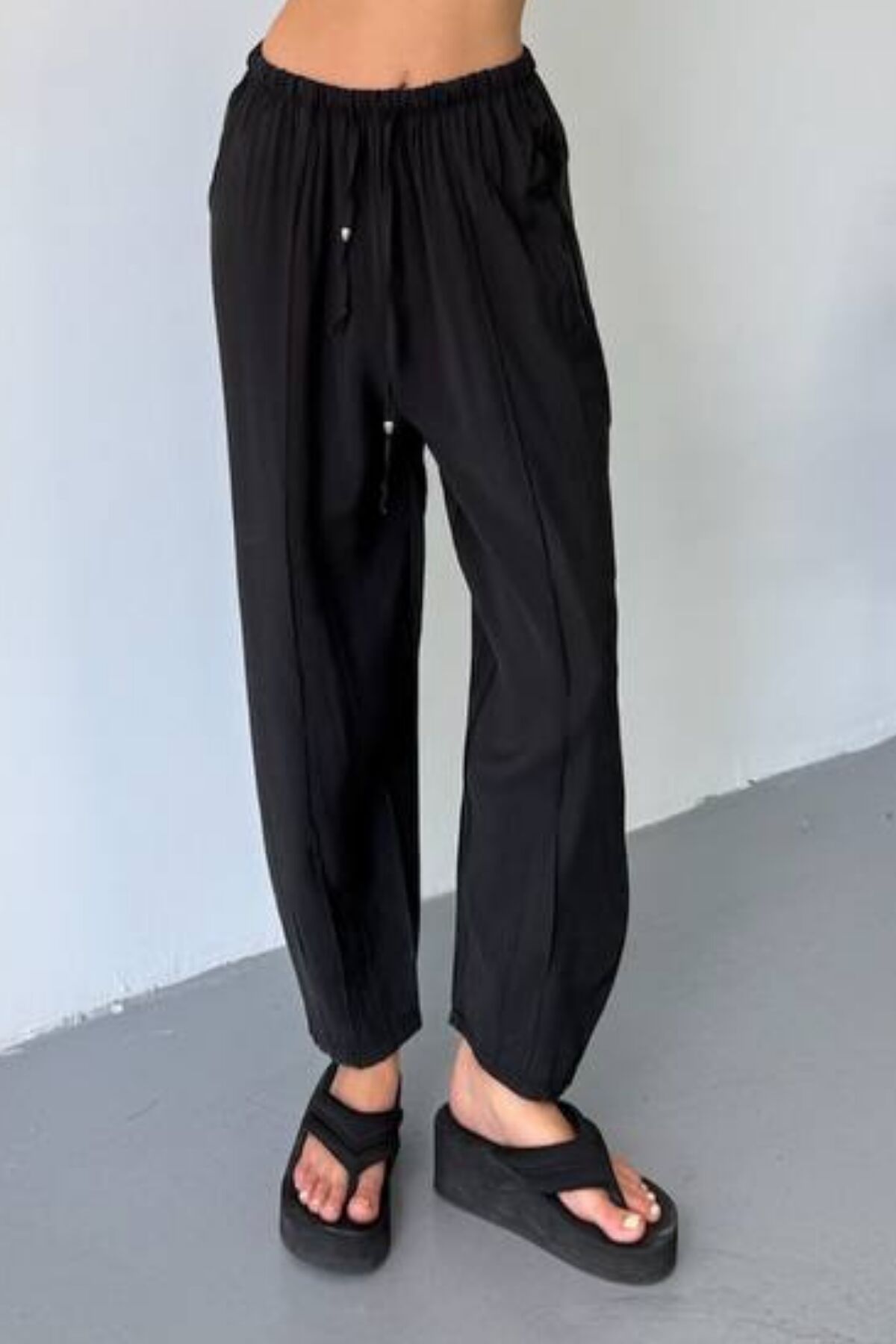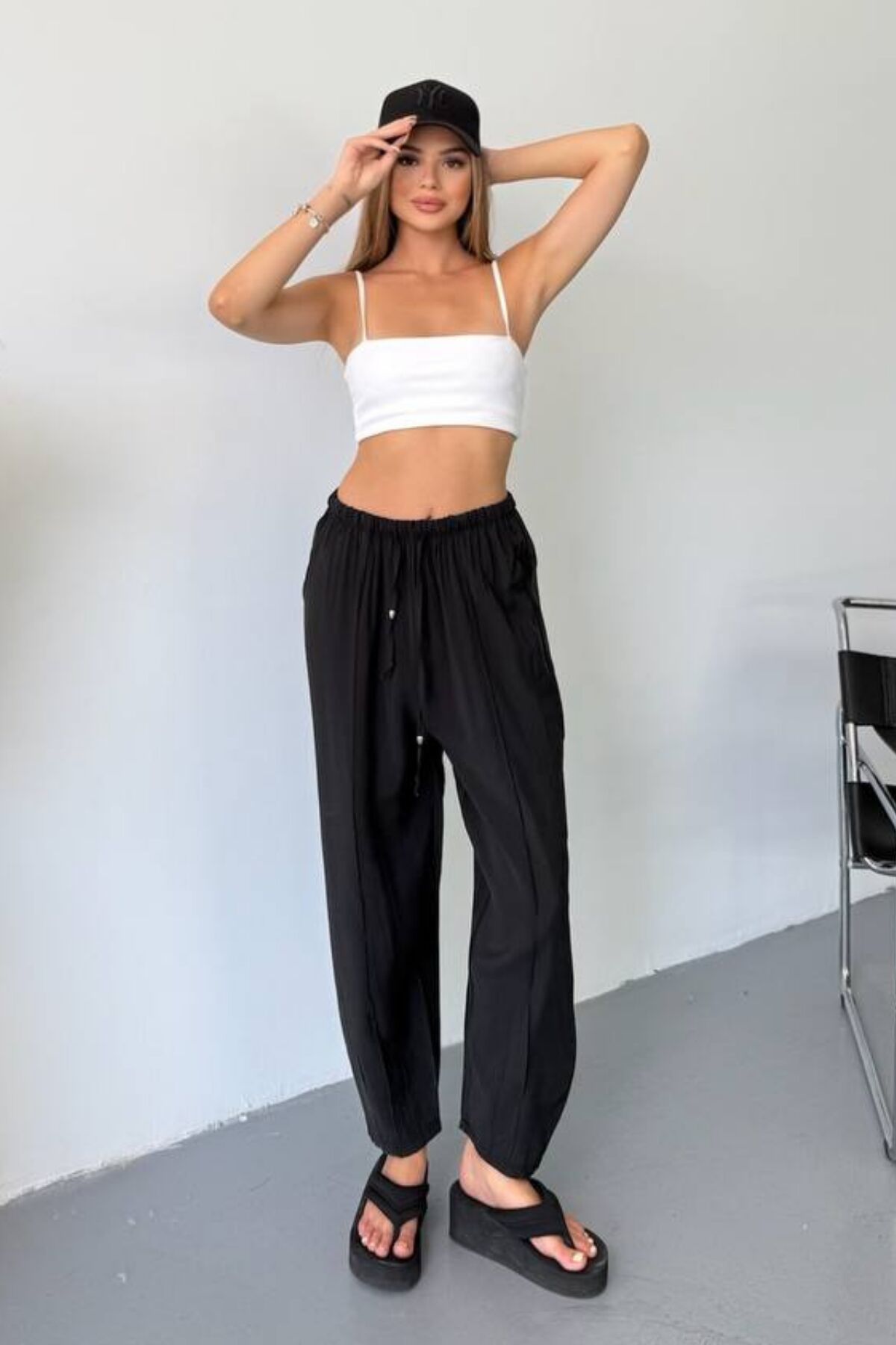 Feela Moda Kadın Modal Cupra Beli Lastikli Çımalı Şalvar Pantolon 2019