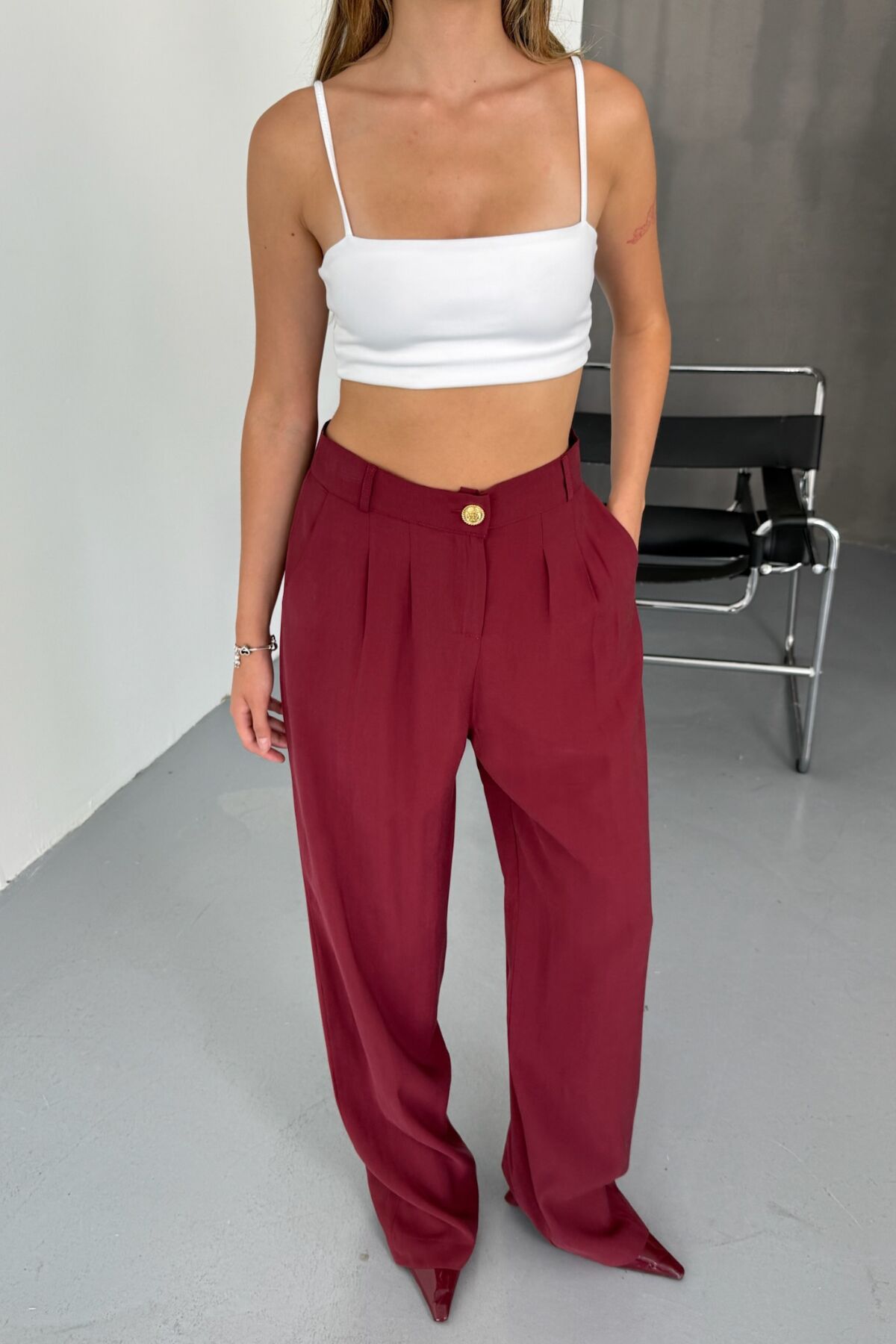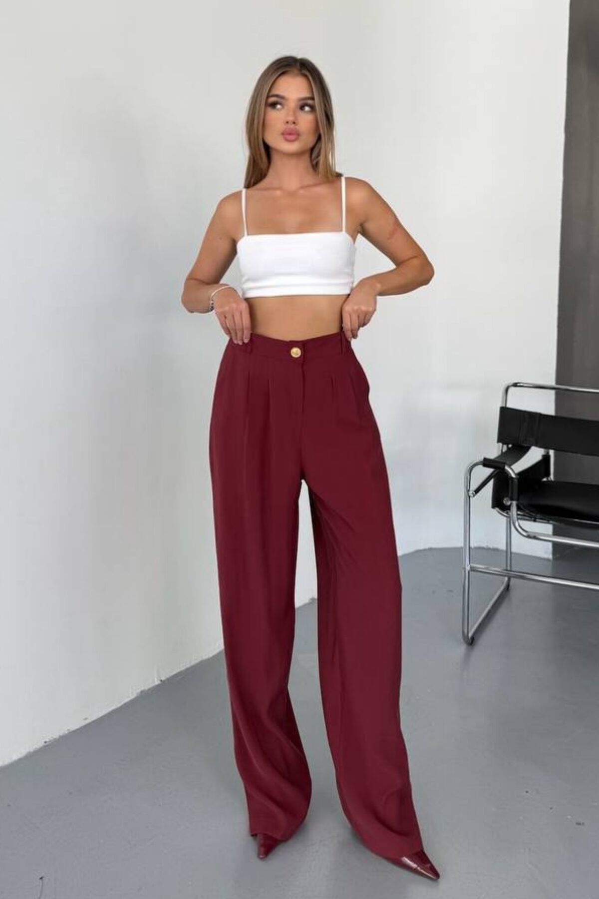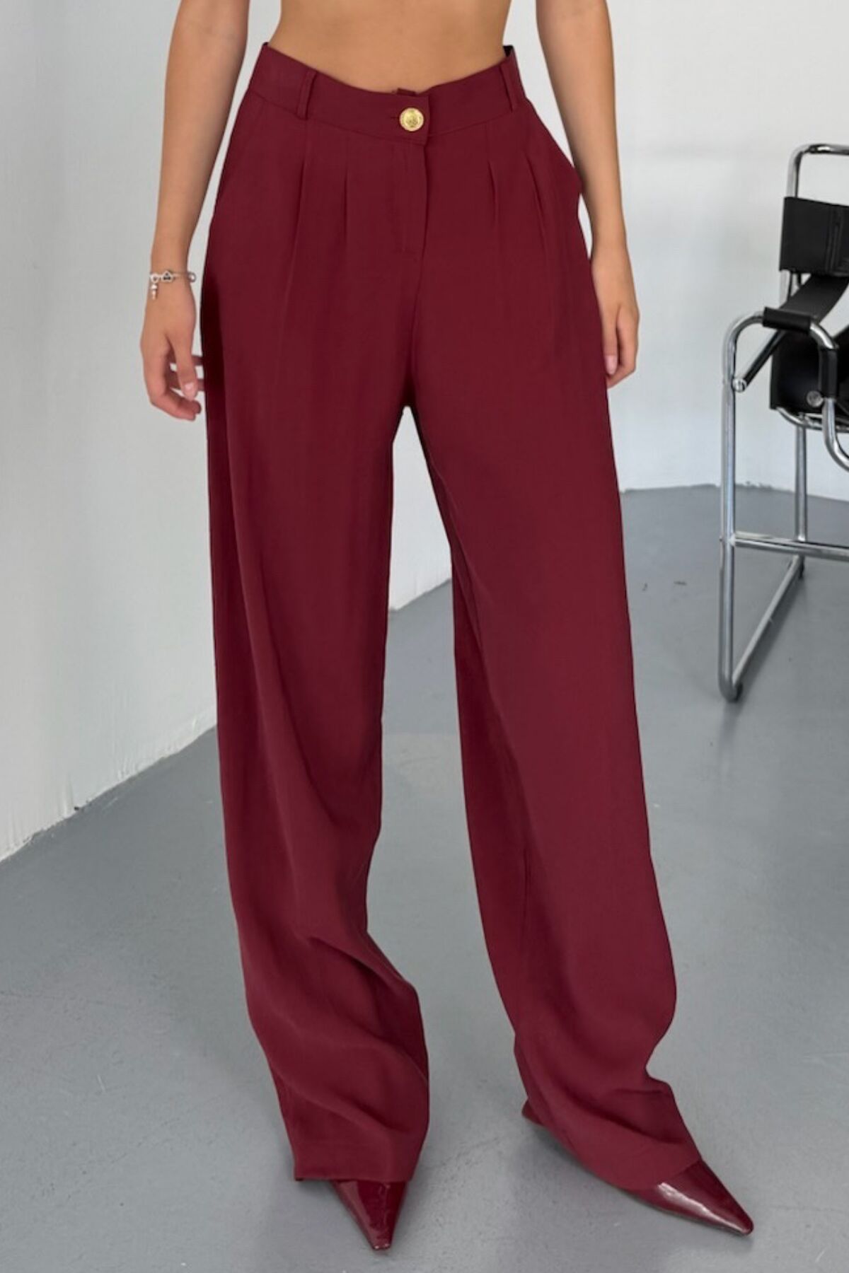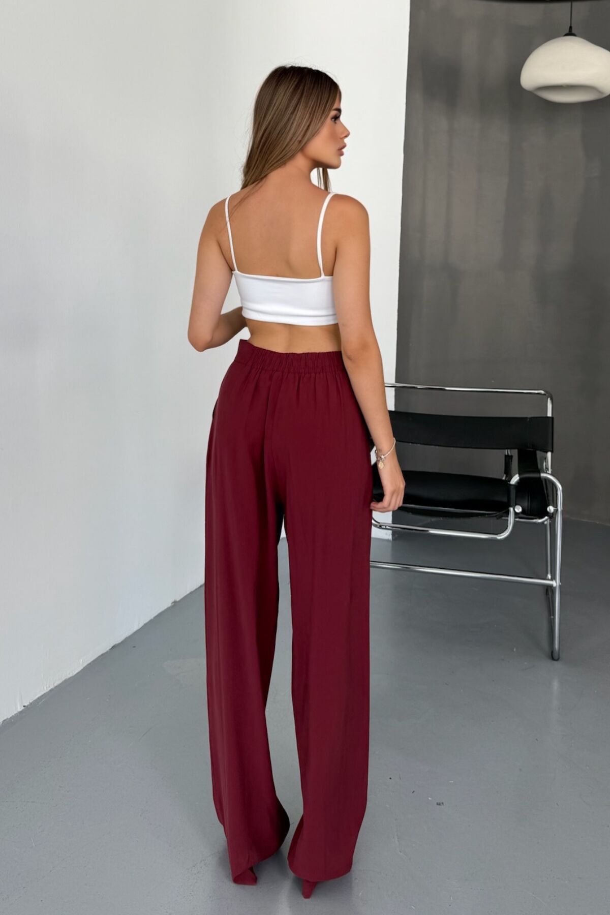 Feela Moda Kadın Modal Cupra Dokuma Pileli Palazzo Pantolon 2022 40 - Bordo