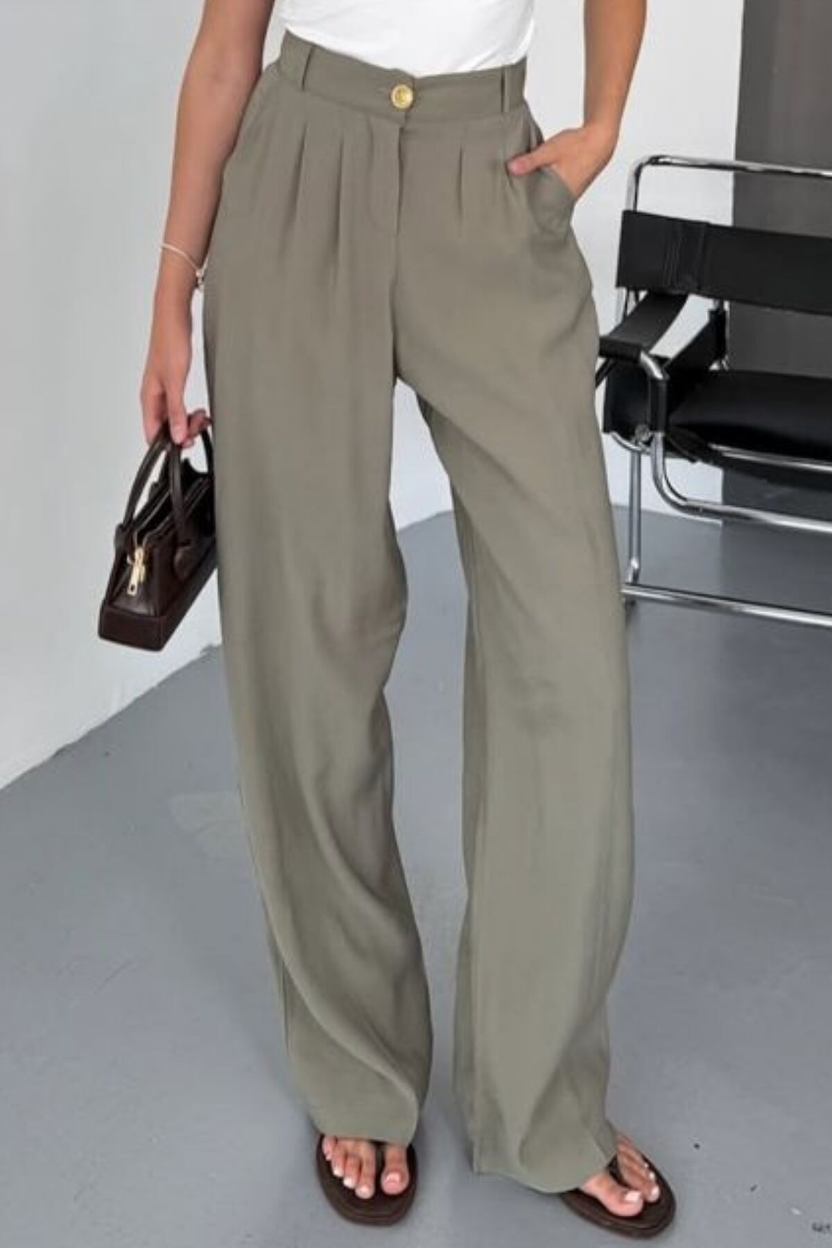 Feela Moda Kadın Modal Cupra Dokuma Pileli Palazzo Pantolon 2022 42 - Haki