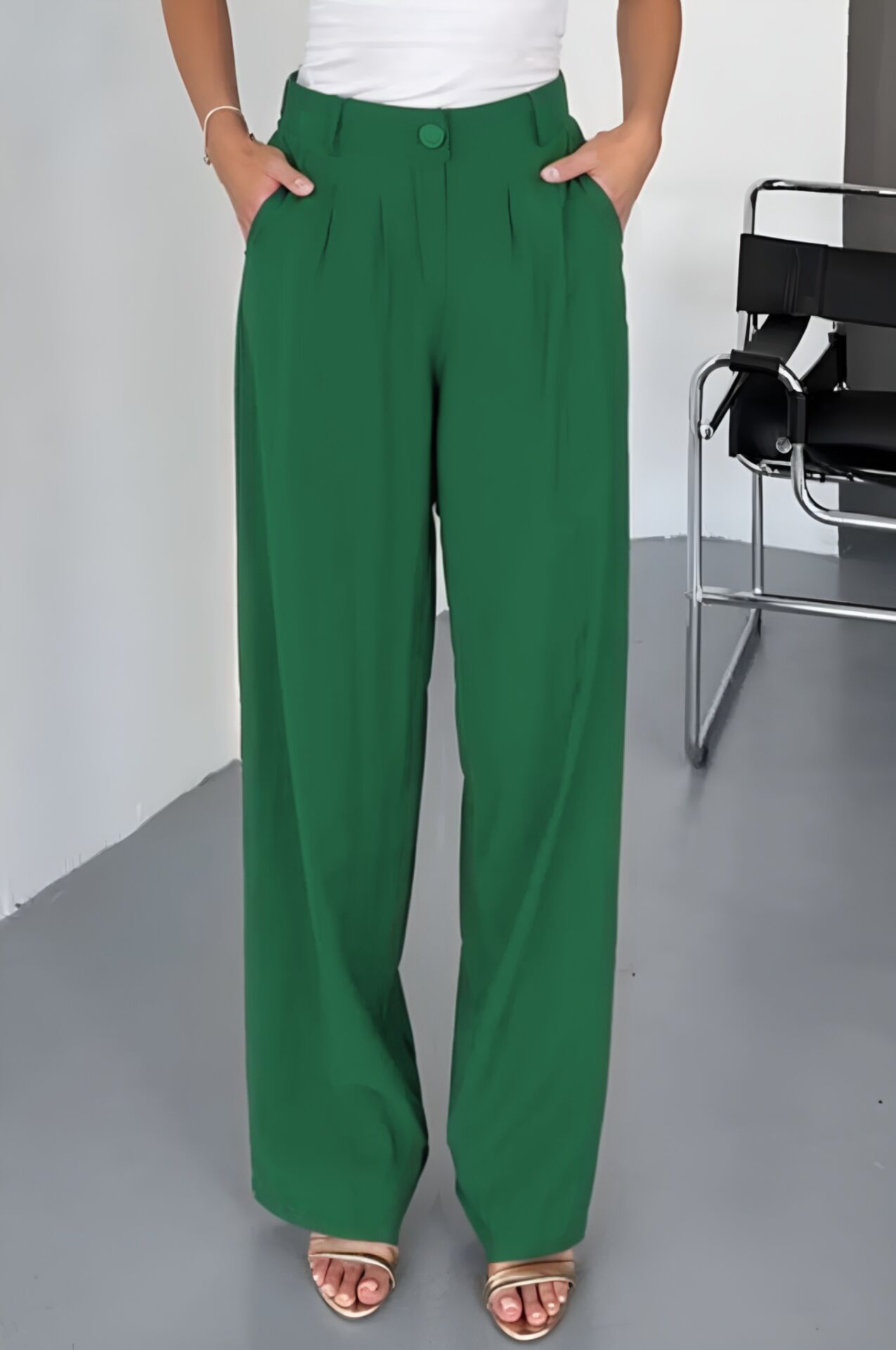 Feela Moda Kadın Modal Cupra Dokuma Pileli Palazzo Pantolon 2022 36 - Yeşil