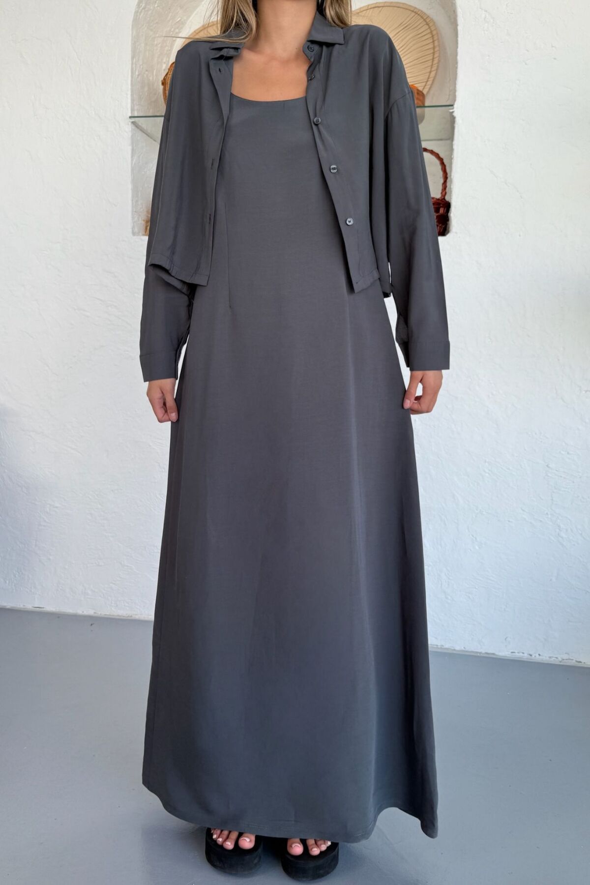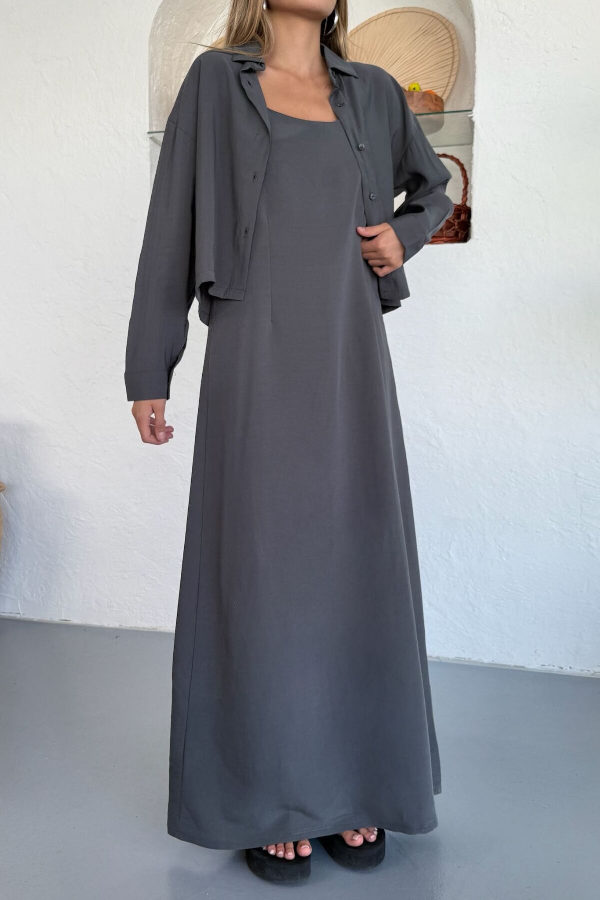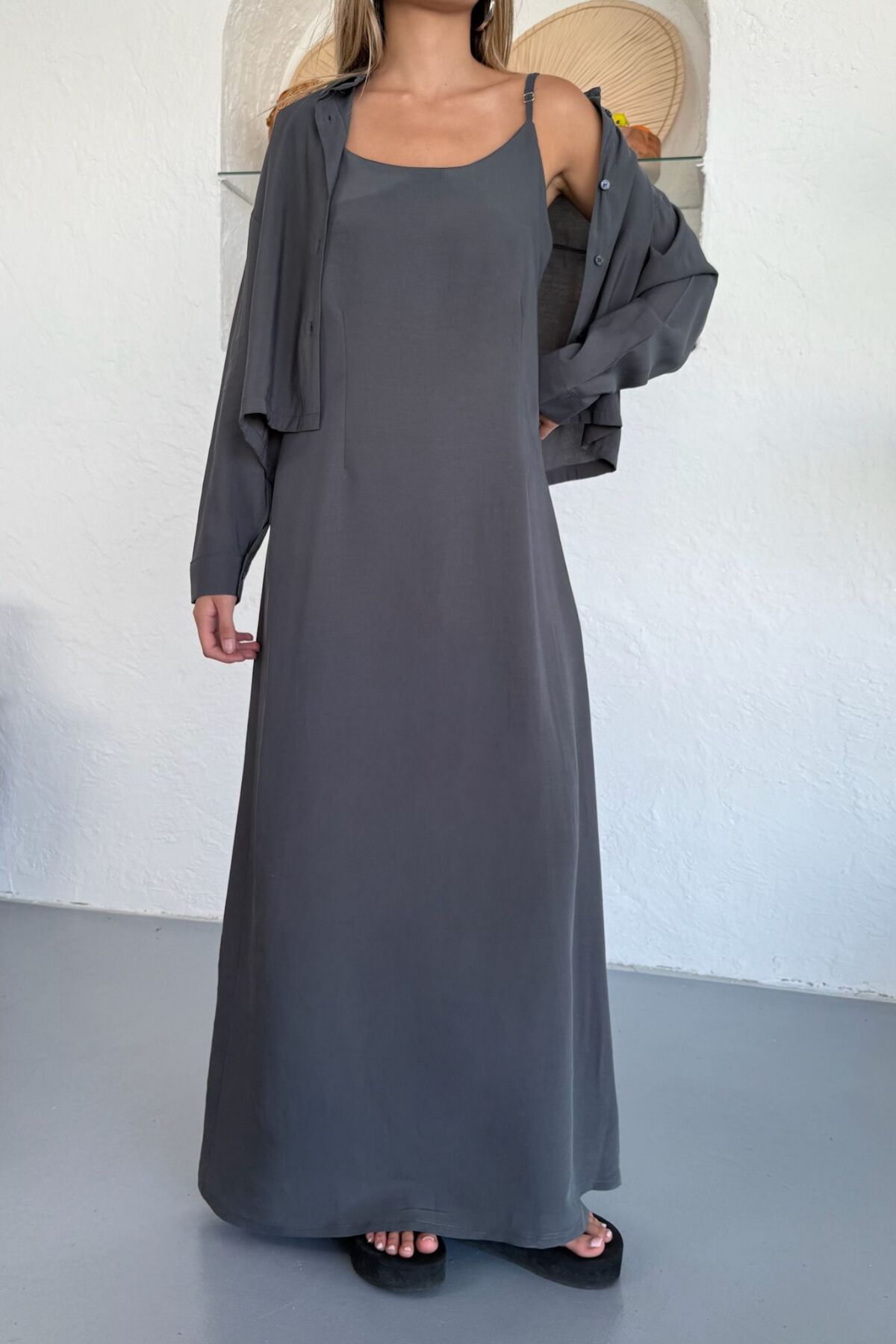 Feela Moda Kadın Modal Dokuma Ayarlanabilir Askılı Bolerolu Elbise Takım 2018 S - Antrasit