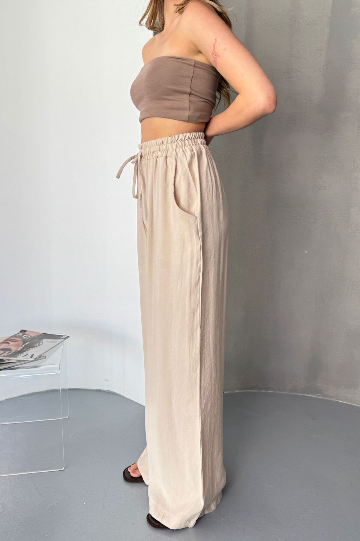 Feela Moda Kadın Modal Dokuma Beli Lastikli Palazzo Kadın Pantolon 2016 38 - Bej
