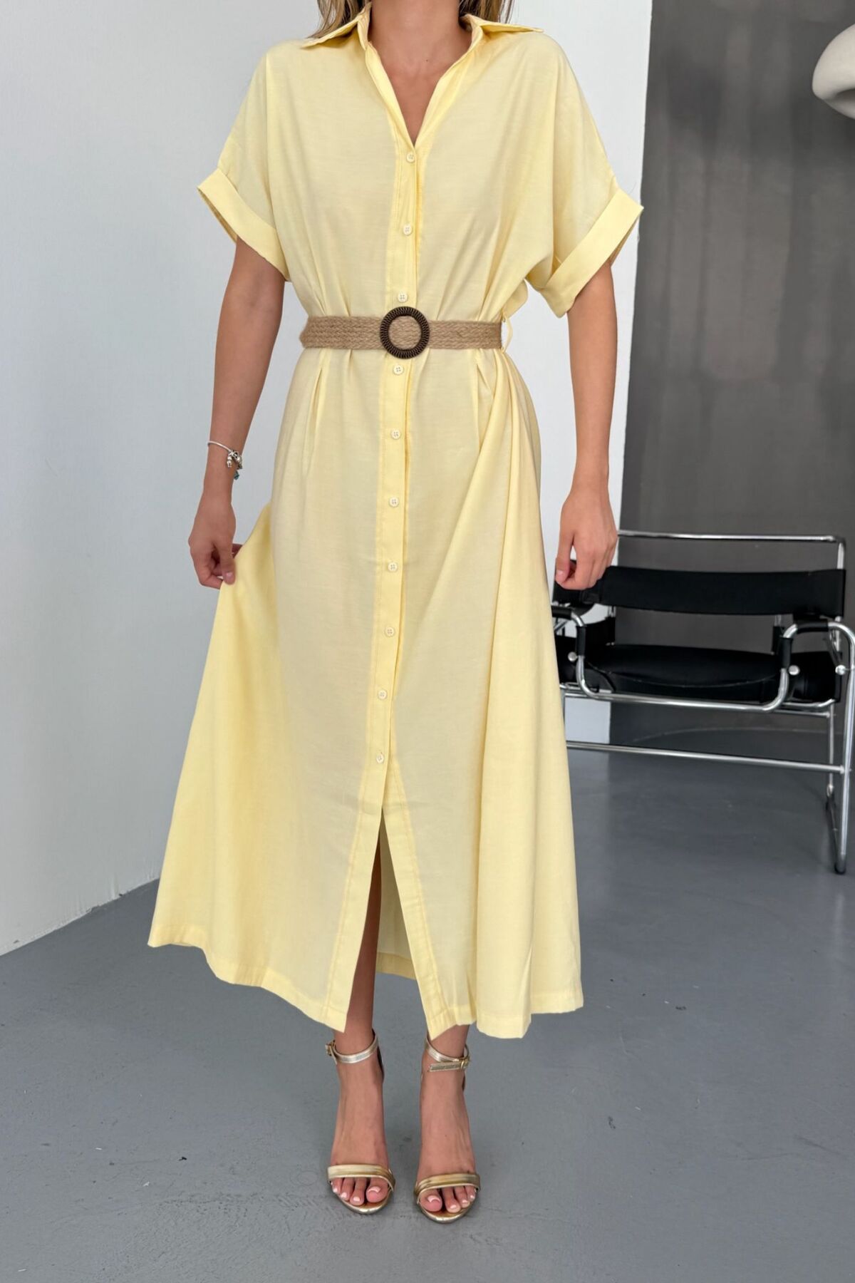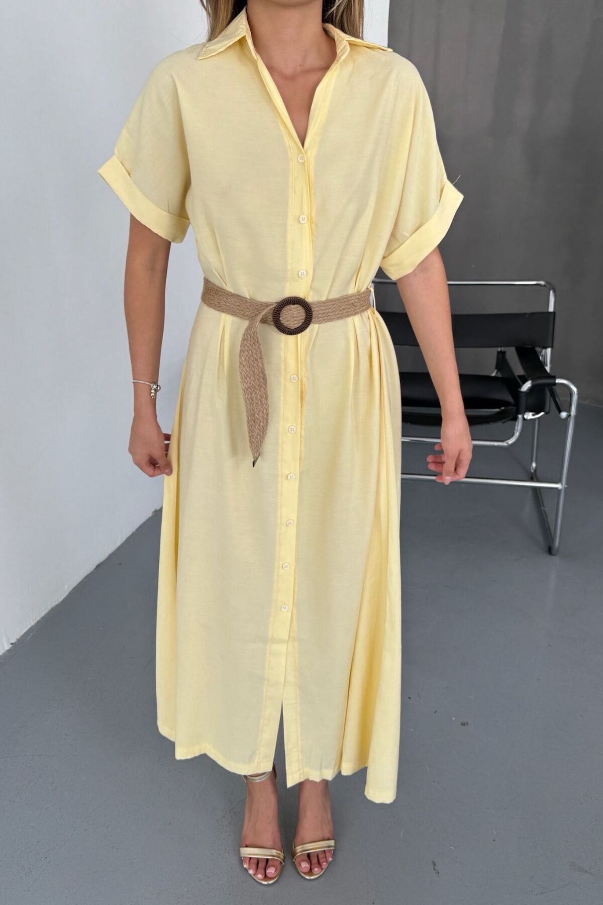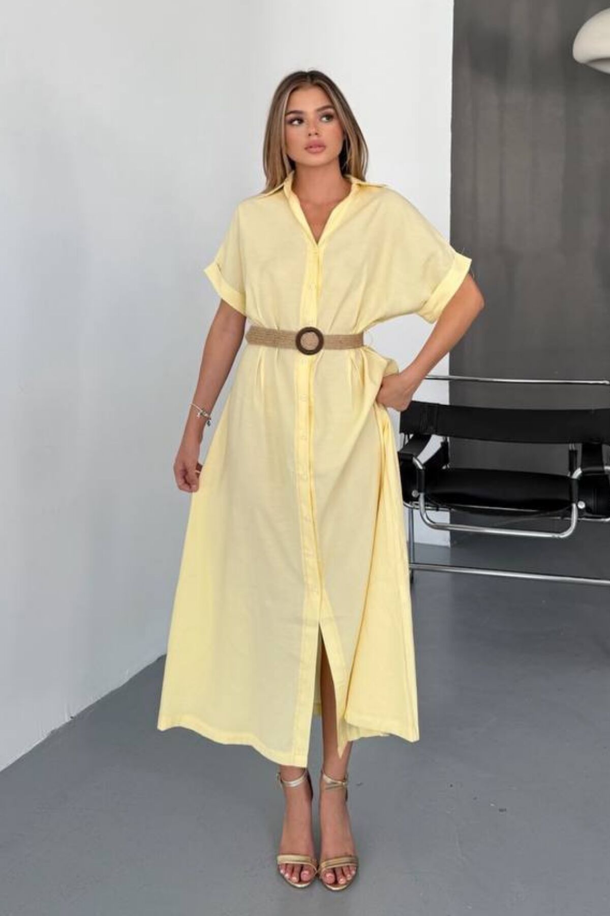 Feela Moda Kadın Modal Dokuma Kemerli Gömlek Elbise 2015 M - Sarı