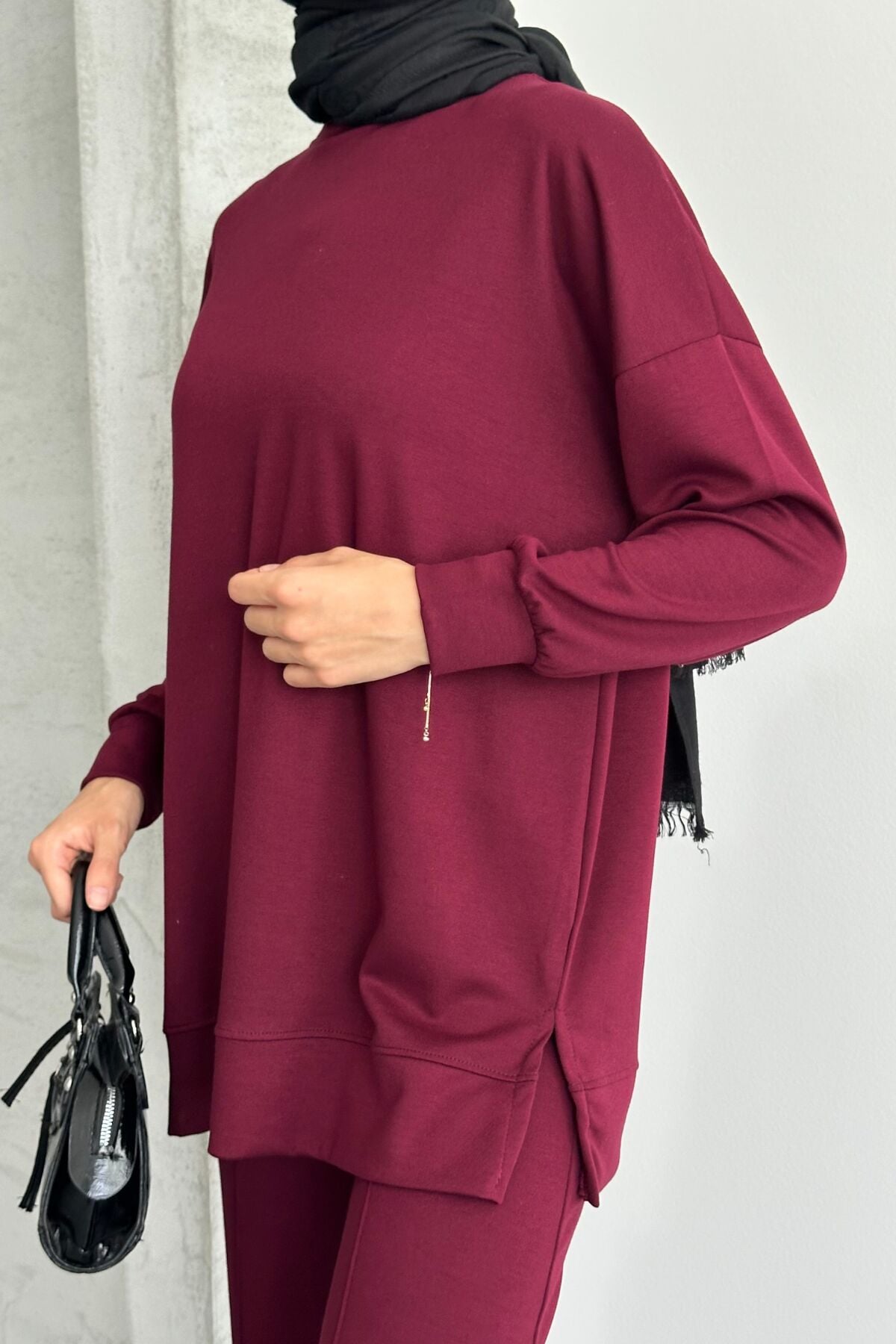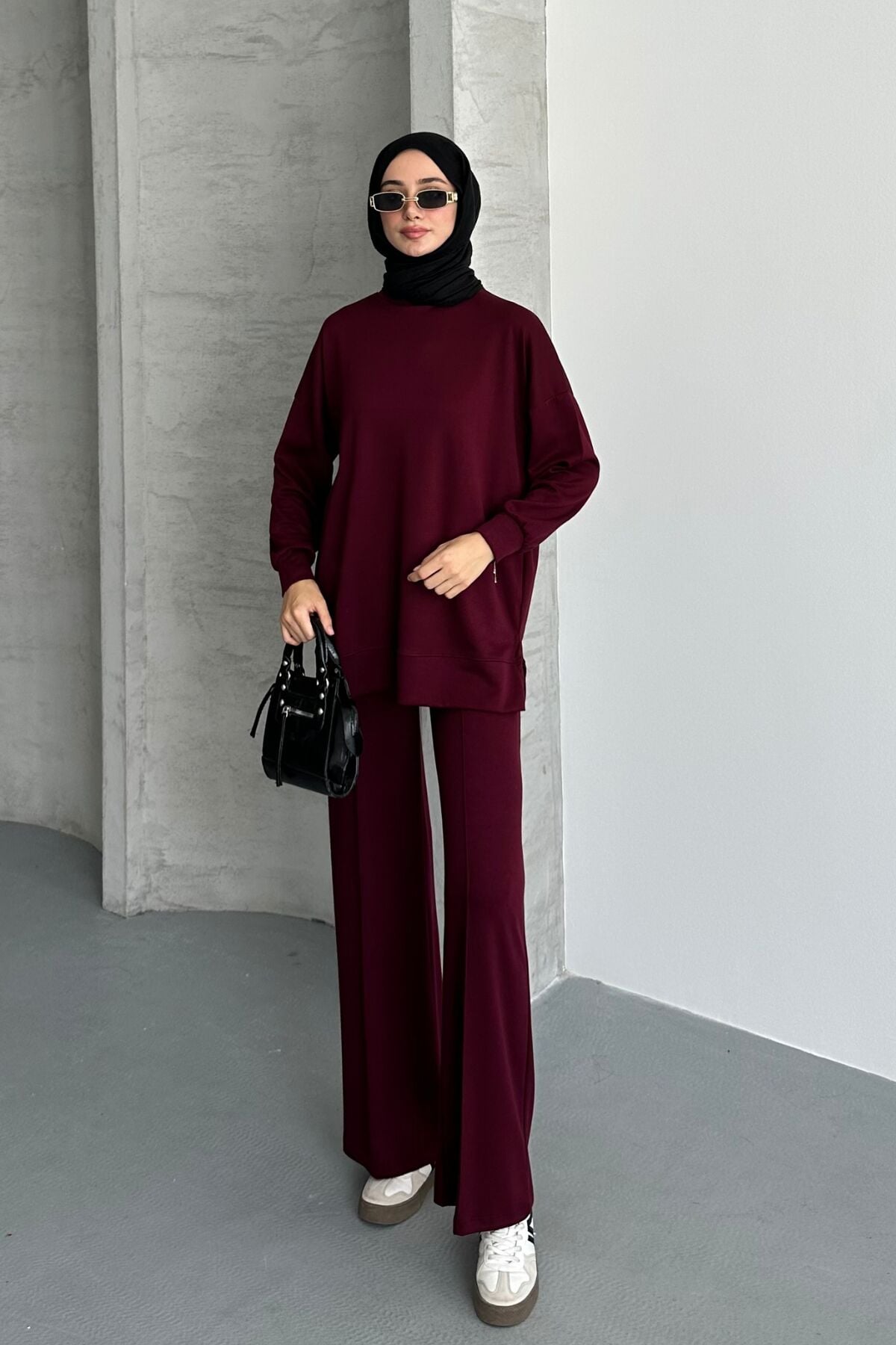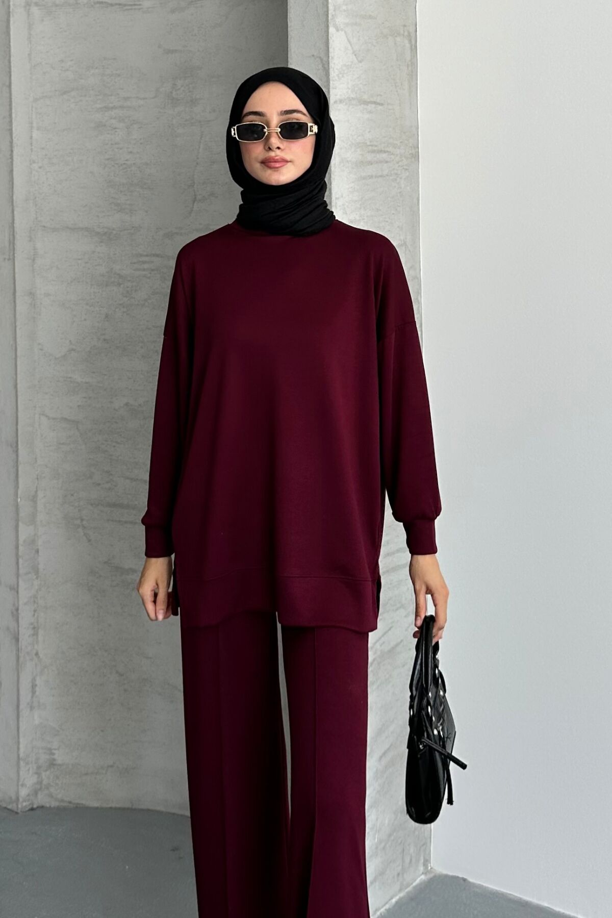 Feela Moda Kadın Oysh Modal Oversize Tesettür Tunik Takım 2020 L - Bordo