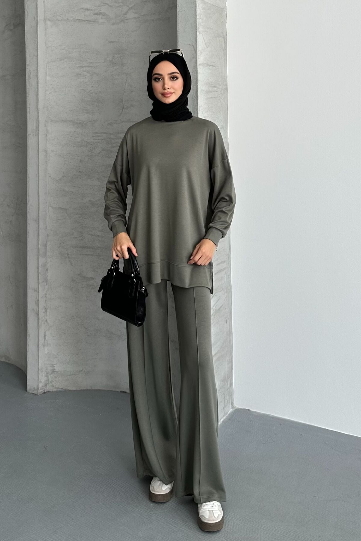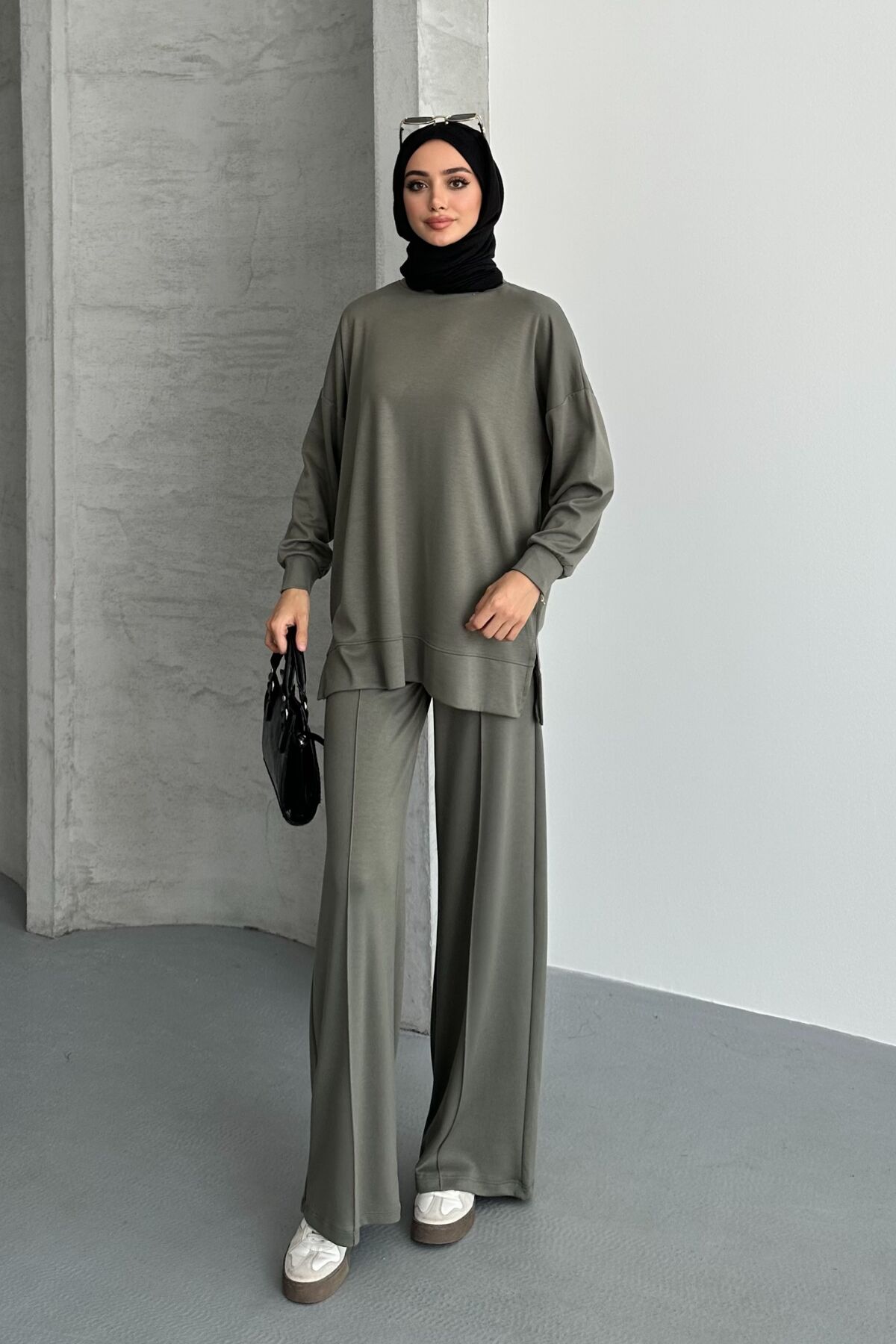 Feela Moda Kadın Oysh Modal Oversize Tesettür Tunik Takım 2020 L - Haki