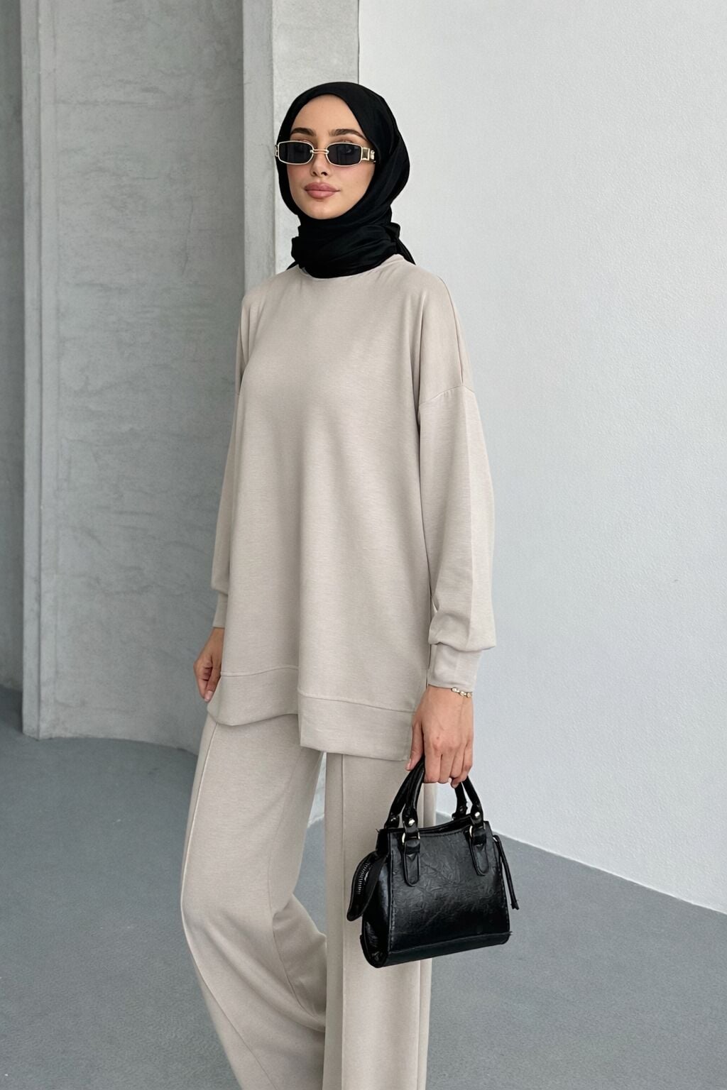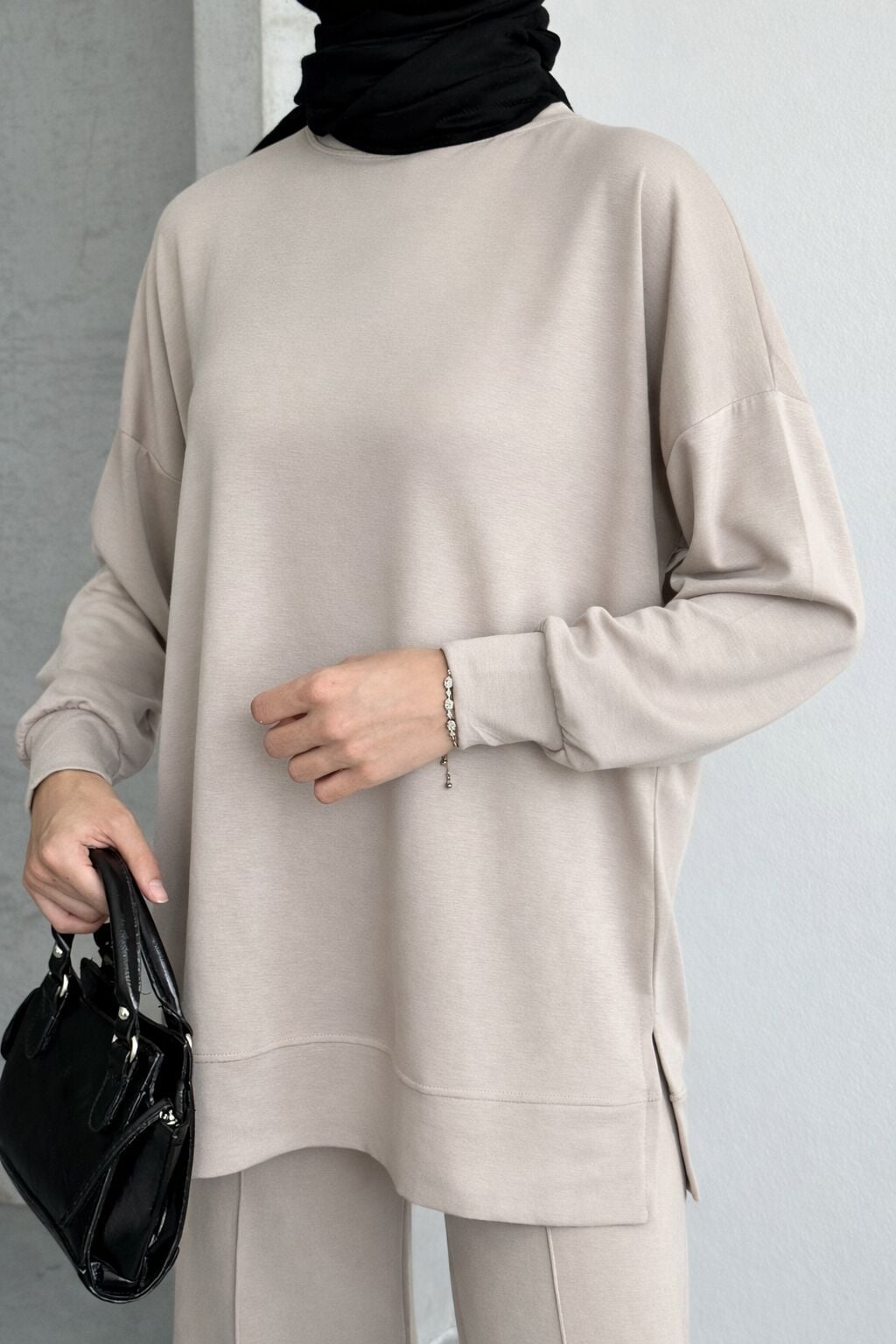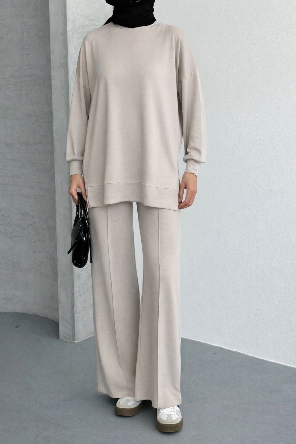 Feela Moda Kadın Modal Penye Oversize Tesettür Tunik Takım 2020
