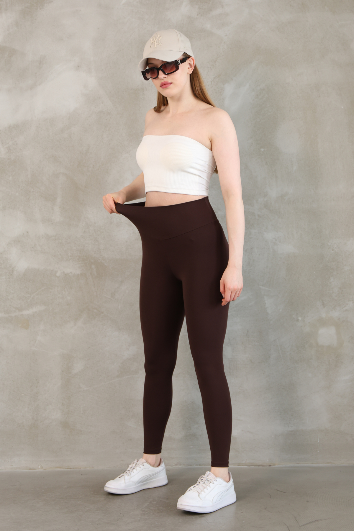 Feela Moda Premium Push Up Yüksel Bel Toparlayıcı Şardonlu Kışlık Tayt 2006 M - Kahverengi