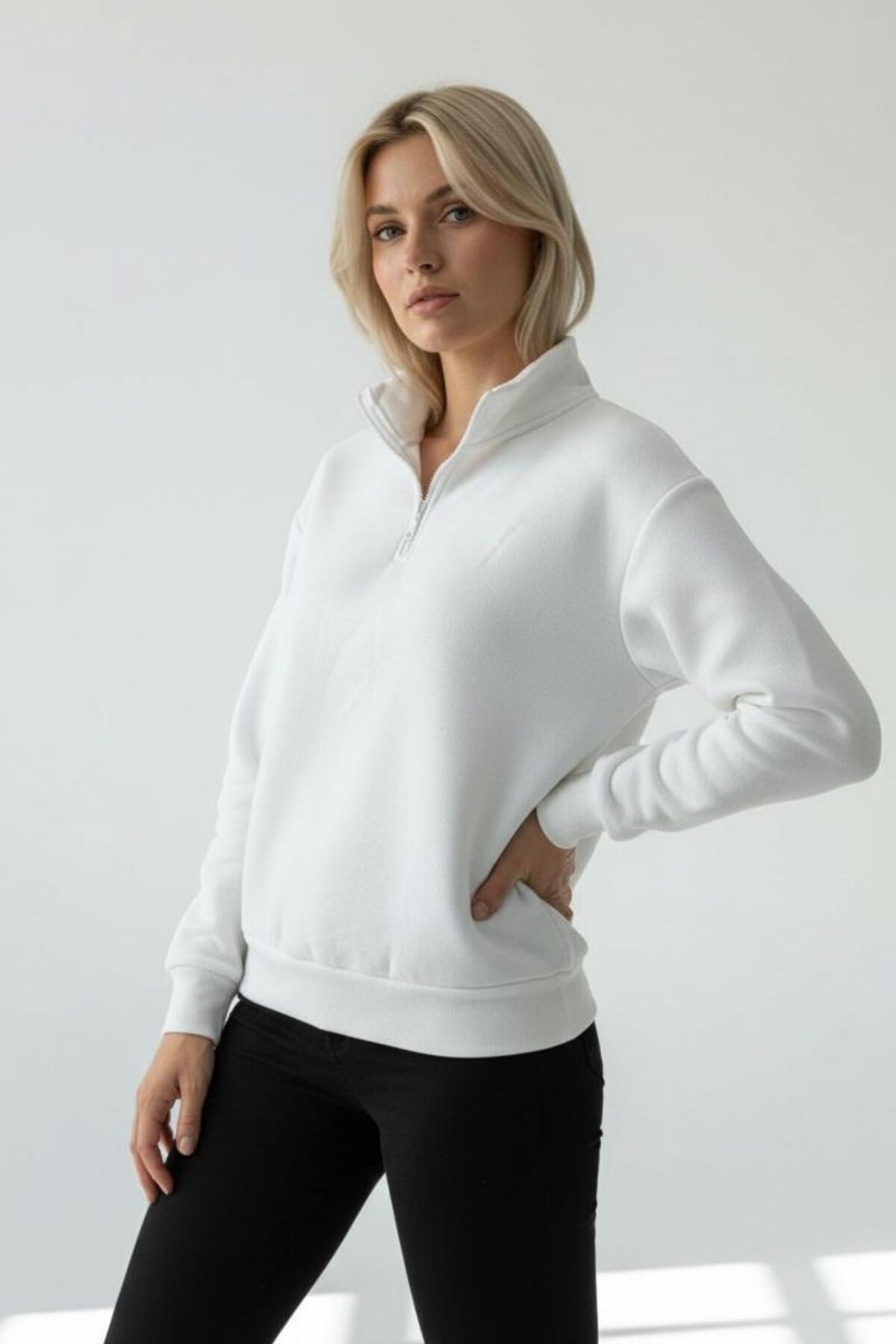 - Oversize kesimi ile rahat ve şık bir görünüm sunar.; - Örme kumaş yapısı, konforlu bir kullanım sağlar.; - Yetişkin kadınlar için tasarlanmış, günlük kullanım için idealdir.; - Basic koleksiyonun parçası olarak, her gardıropta temel bir yer edinir.; - Cool & Comfort persona'ya sahip bu sweatshirt, günlük şıklığı ön plana çıkarır.; - Casual ortamlarda rahatlıkla tercih edilebilir; günlük aktivitelerinizde size eşlik eder.; - 30°C'de yıkama talimatına uygun şekilde kolayca temizlenebilir.; - Basic siluetiyle zamansız bir tarz yaratır; her mevsim giyilebilir.; - Tekli paket içeriğiyle pratik bir alışveriş deneyimi sunar.; - Tüylenmez özelliği sayesinde uzun süreli kullanım vaat eder.; - Bej rengiyle kolayca kombinlenebilir ve nötr bir görünüm sağlar.; - %100 pamuk materyal bileşeni cildinize nefes aldırırken yumuşaklık hissi verir.; - Baskısız tasarımıyla sade ve şık bir duruş sergiler.; - 3 iplik penye şardonlu dokuma tipi, dayanıklılığı artırarak ürün ömrünü uzatır.; - Uzun kollu tasarımı soğuk havalarda ekstra koruma sunar.; - Fermuarlı yaka tipi hem stil sahibi görünüm kazandırır hem de kullanım kolaylığı sağlar.; - Takma kol detayı ile modern bir dokunuş eklenir.; - Yarım pat fermuar kapama şekli fonksiyonellik ve estetik bir denge kurar.; - Sürdürülebilirlik detayı bulunmazken, ürün kalitesi ön planda tutulmuştur.; - Düz deseniyle sadeliği benimseyenlerin tercihi olur.; - Fermuar detayına sahip bu sweatshirt pratik kullanım imkanı tanır.; - Tek parça halinde gelen bu ürün, minimalist gardıropların vazgeçilmezi olacak.; - Kutu bulunmamas