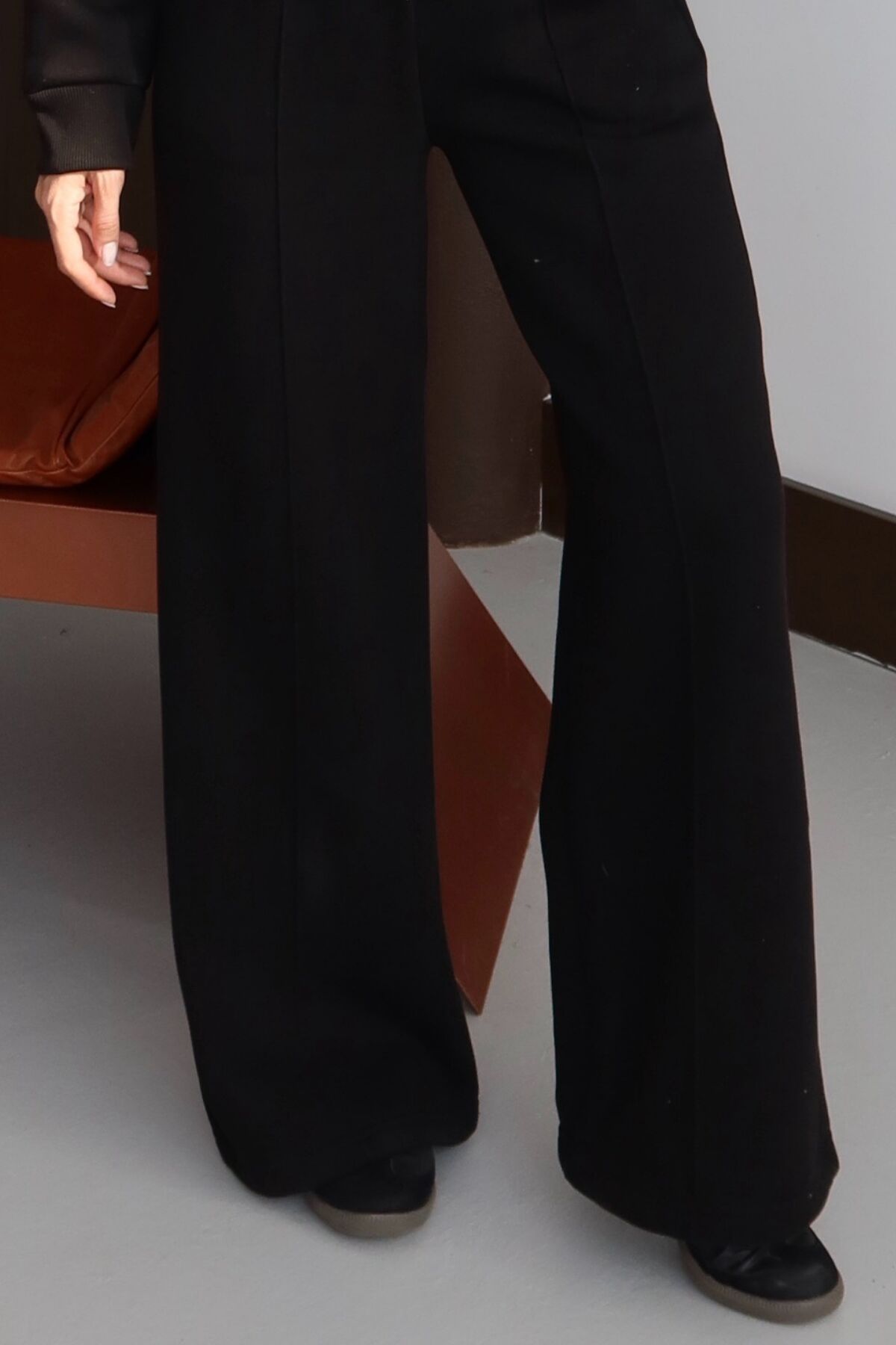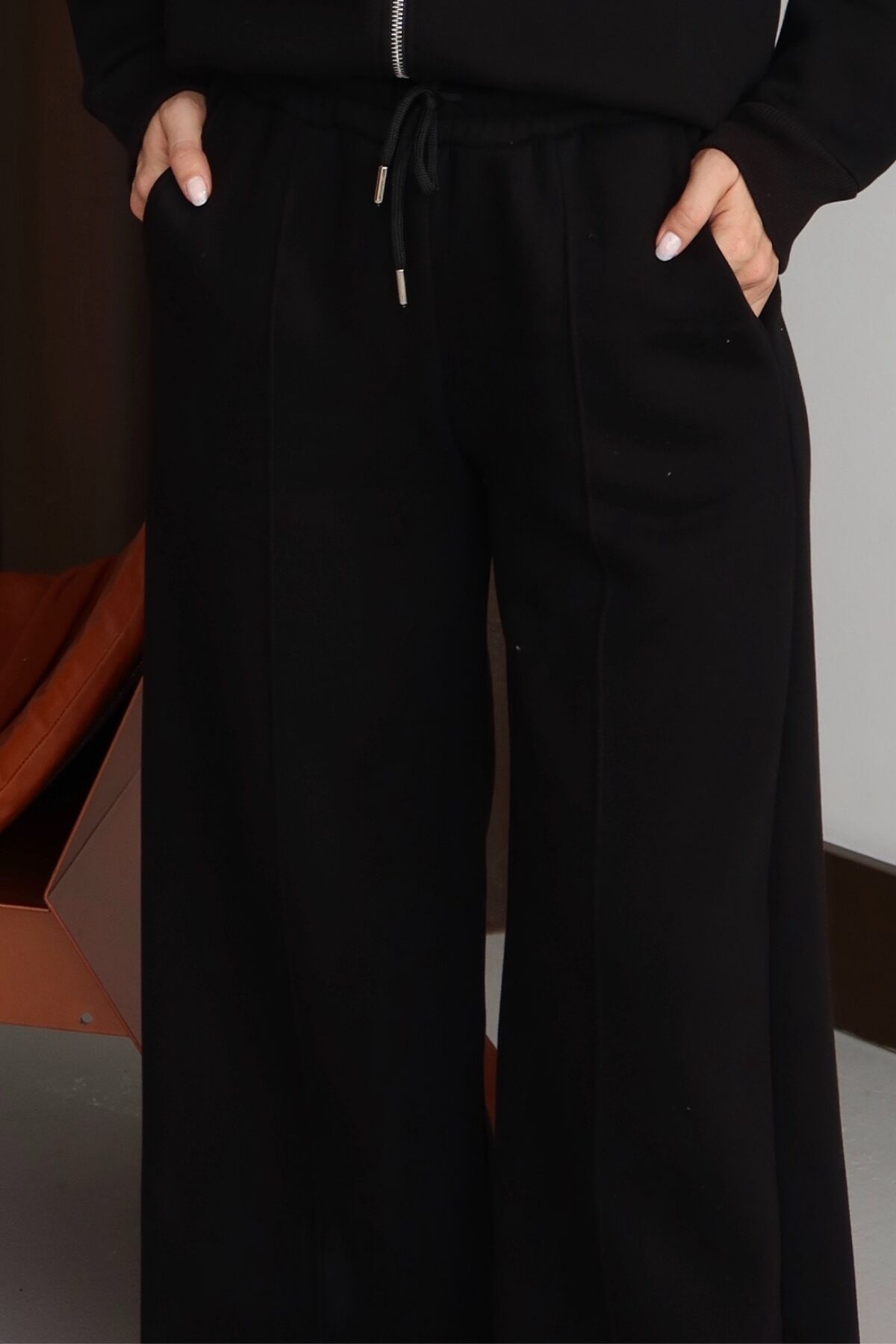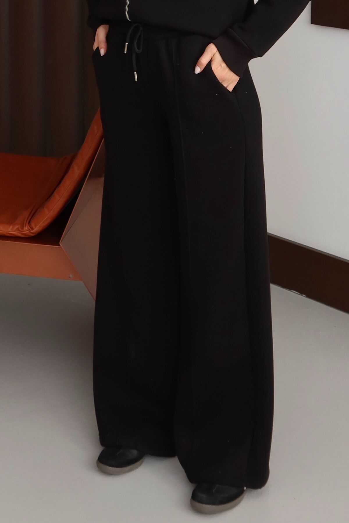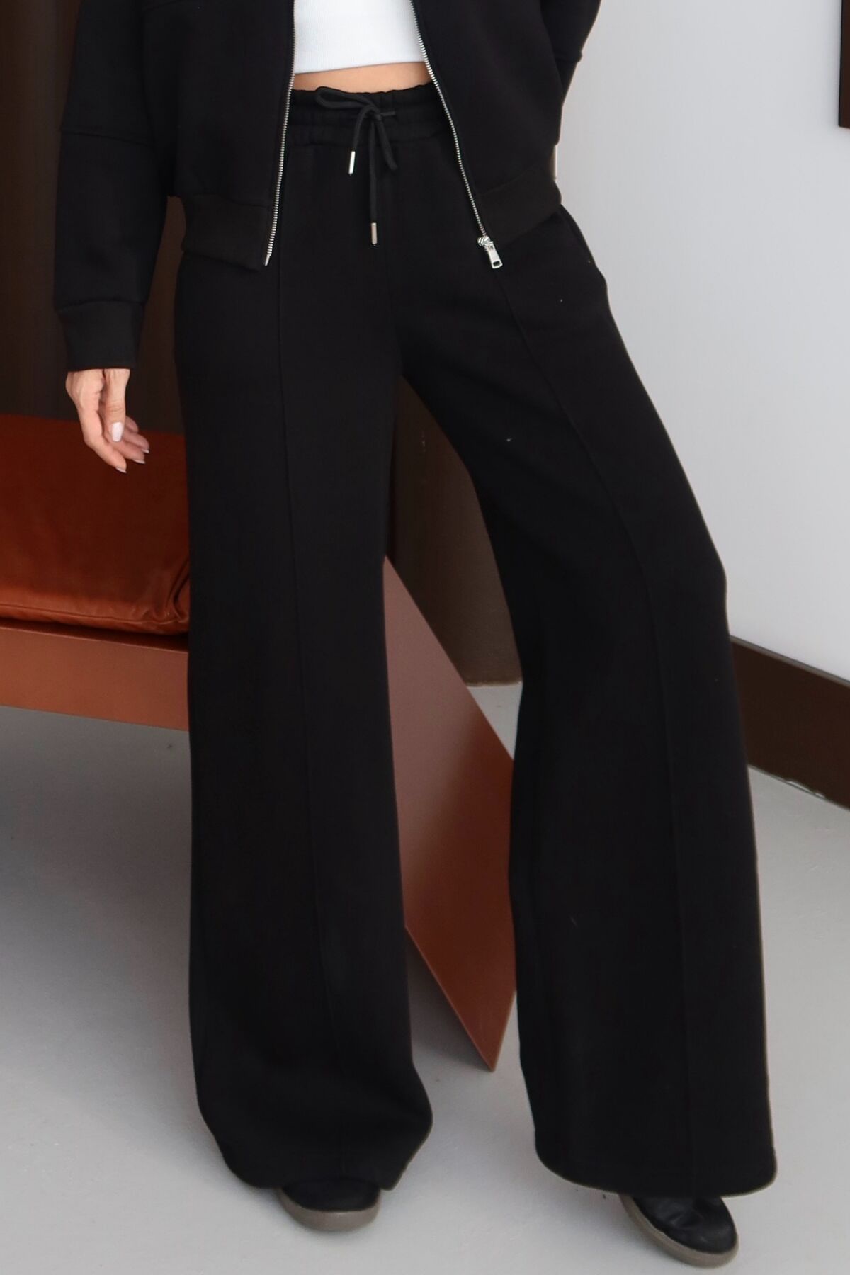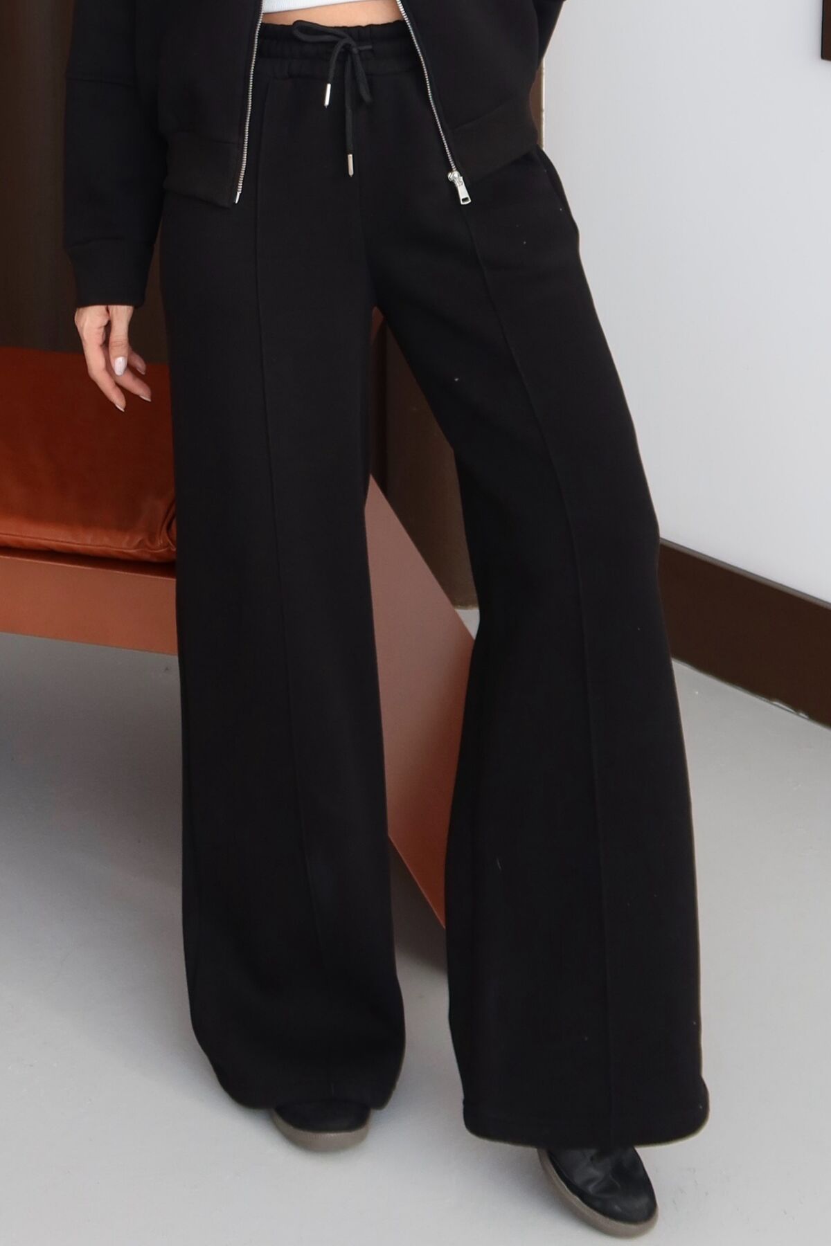 Balenbi Kadın 3 İplik İçi Polarlı Yüksek Bel Çımalı Palazzo Eşofman Altı 1144 XL - Siyah